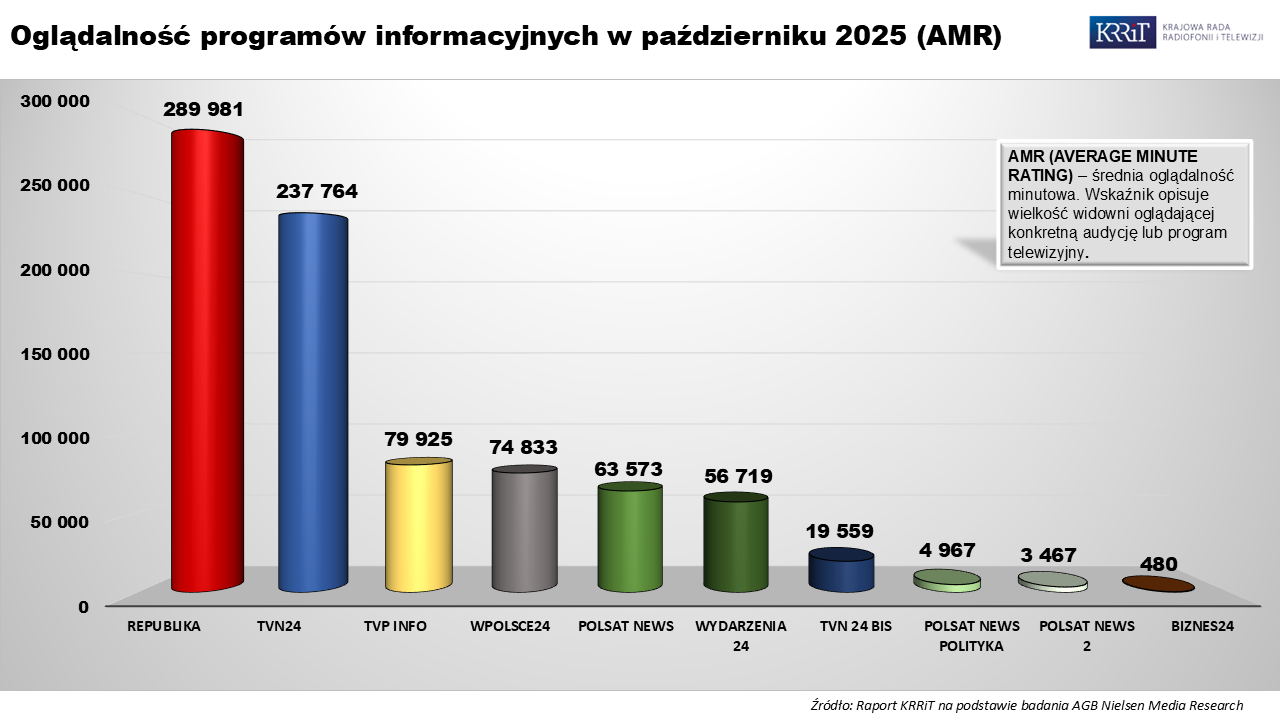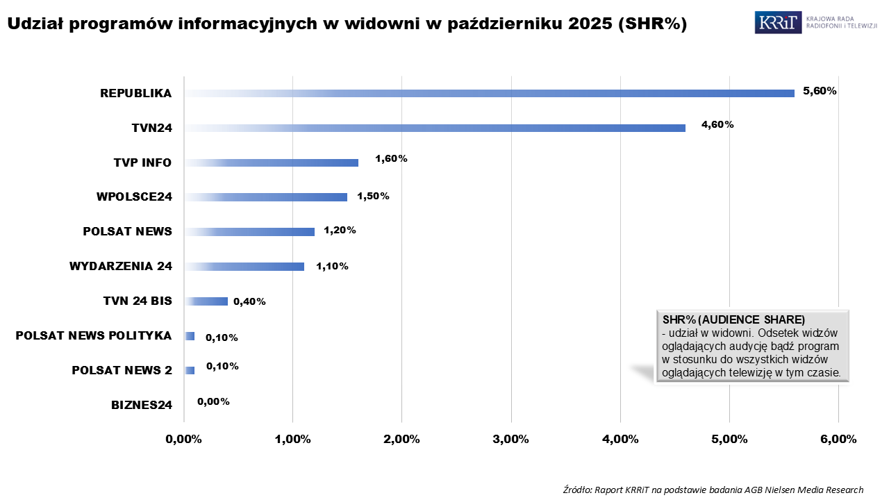 Wzrost oglądalności telewizji w październiku 2025 roku - raport KRRiT