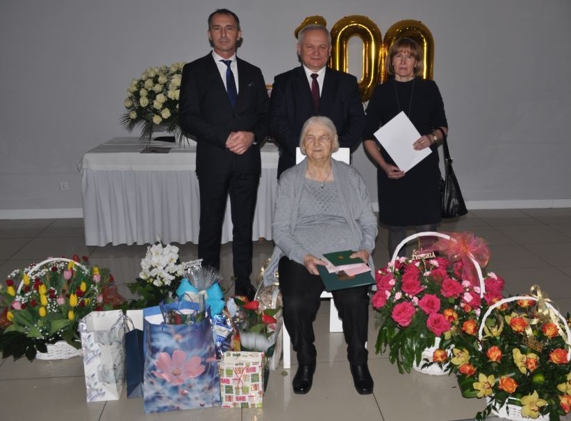 Z okazji setnych urodzin, najbliżsi Jubilatki zorganizowali uroczystość, w której wzięli udział: rodzina, znajomi oraz przedstawiciele władz samorządowych. W tym wyjątkowym dniu Jubilatkę odwiedzili: Wójt Gminy Mykanów Dariusz Pomada wraz z Kierownikiem Urzędu Stanu Cywilnego Dorotą Śleszyńską oraz Dyrektor OR KRUS w Częstochowie Tomasz Ślusarczyk, który wręczył Pani Kazimierze bukiet kwiatów oraz list gratulacyjny Prezesa Kasy Dariusza Rohde z informacją o przyznaniu honorowego świadczenia pieniężnego.