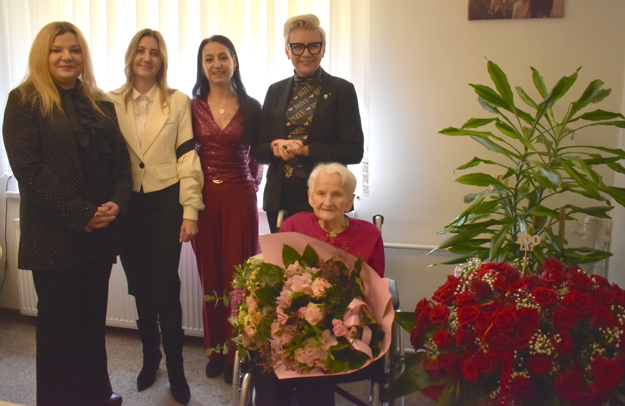 Z tej okazji Dyrektor Oddziału Regionalnego Kasy Rolniczego Ubezpieczenia Społecznego w Częstochowie Marzena Kędziora przekazała w imieniu Prezesa Kasy list gratulacyjny z decyzją o przyznaniu honorowego świadczenia z okazji ukończenia 100 lat oraz bukiet kwiatów.