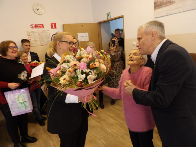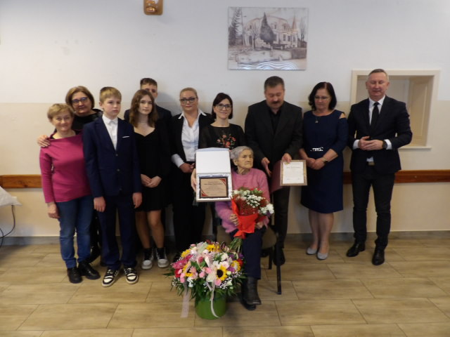 W uroczystości oprócz licznej rodziny wzięli udział przedstawiciele lokalnych władz i instytucji: Wójt Gminy Kondratowice, Przewodnicząca Rady Gminy, Przedstawiciele Gminnego Ośrodka Pomocy Społecznej oraz delegacja uczniów ze Szkoły Podstawowej im. Bohaterów Armii Krajowej w Prusach. Nie zabrakło także przedstawicielki Kasy Rolniczego Ubezpieczenia Społecznego. Kierownik Placówki Terenowej w Strzelinie Sybilla Gancarek w imieniu Prezesa KRUS wręczyła Jubilatce bukiet kwiatów oraz list gratulacyjny z życzeniami i informacją o przyznaniu honorowego świadczenia emerytalnego z tytułu osiągnięcia 100 lat życia.