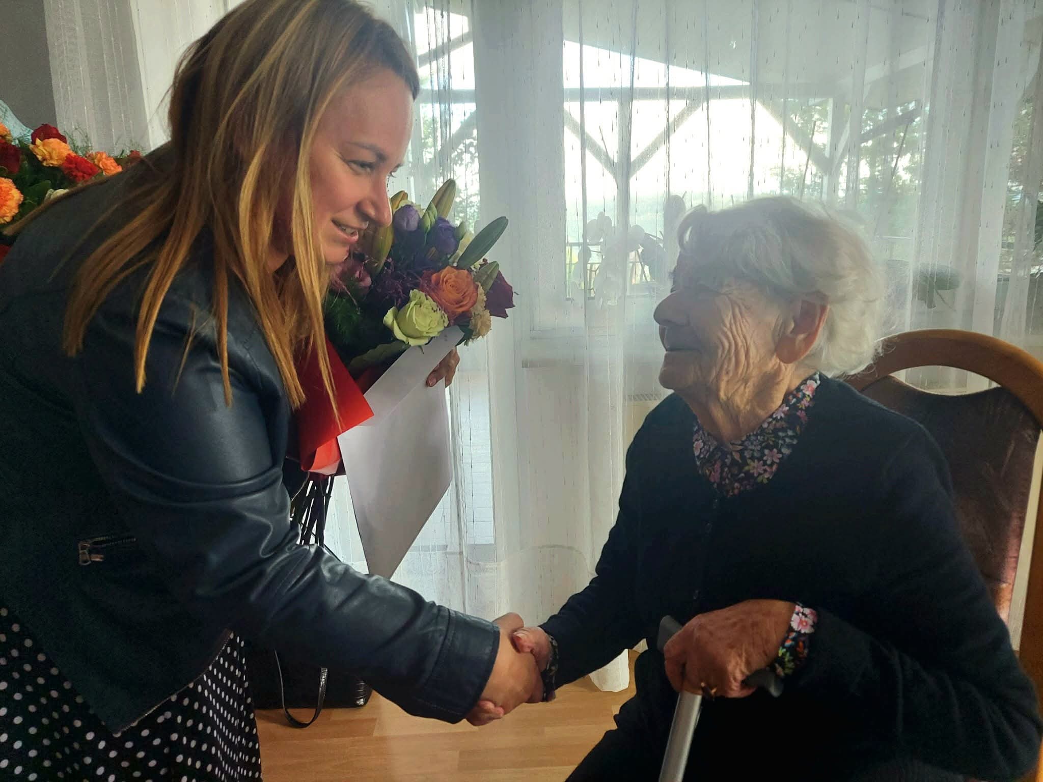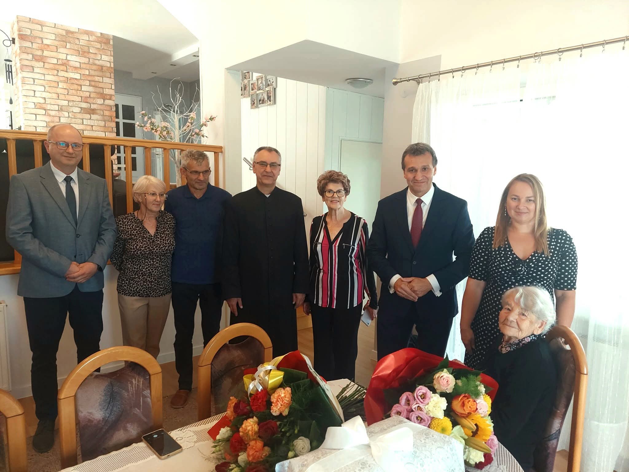 Jubilatkę odwiedzili również Wójt Gminy Pleśna – jako przedstawiciel lokalnej wspólnoty samorządowej – wraz z Proboszczem Parafii Wniebowzięcia NMP w Pleśnej. Podczas spotkania przekazano najserdeczniejsze życzenia i gratulacje, także w imieniu Premiera Rzeczypospolitej Polskiej oraz Wojewody Małopolskiego.