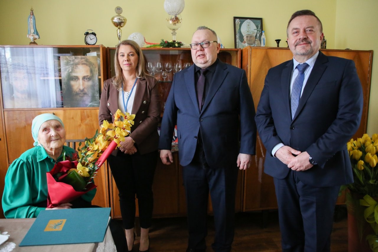W uroczystości z okazji jubileuszu wzięli udział przedstawiciele Kasy Rolniczego Ubezpieczenia Społecznego. Bukiet kwiatów oraz list gratulacyjny od Prezesa KRUS wręczyli Jubilatce Kierownik PT KRUS w Żyrardowie Mariusz Sobieraj oraz Starszy Specjalista Wieloosobowego Stanowiska ds. Prewencji, Rehabilitacji i Orzecznictwa Lekarskiego Magdalena Felak-Kociszewska.