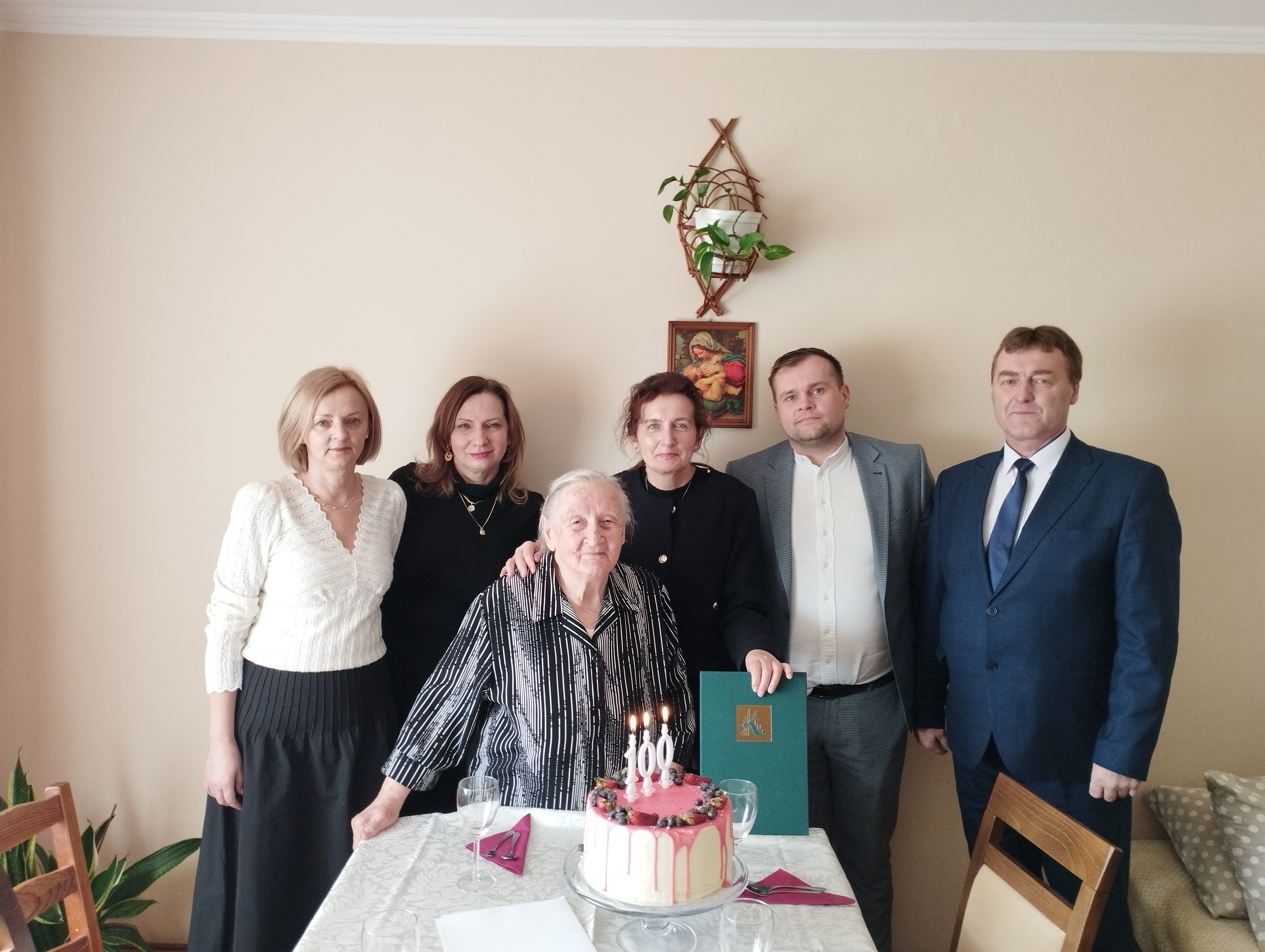 W imieniu Prezesa Kasy Rolniczego Ubezpieczenia Społecznego Dariusza Rohde Kierownik Placówki Terenowej KRUS w Ciechanowie wręczył Jubilatce bukiet kwiatów oraz list gratulacyjny z informacją o przyznaniu świadczenia honorowego z tytułu ukończenia 100 lat.