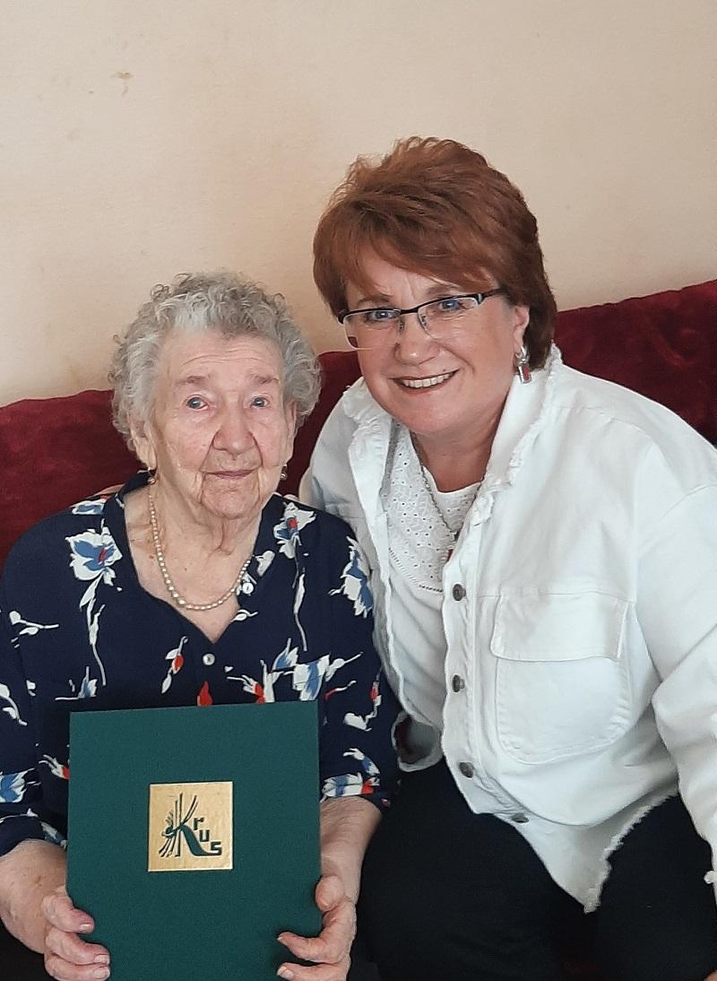 W czerwcu 2024 roku do grona stulatków dołączyła Pani Walentyna Karczewska, pochodząca z Wierzchosławic. Kierownik Placówki Terenowej KRUS w Kamiennej Górze Anna Pękalska, wręczyła szacownej Jubilatce bukiet kwiatów oraz złożyła najserdeczniejsze życzenia. Podczas wizyty został odczytany list Prezesa KRUS Dariusza Rohde z życzeniami i informacją o przyznaniu świadczenia specjalnego z tytułu osiągnięcia 100 lat życia.