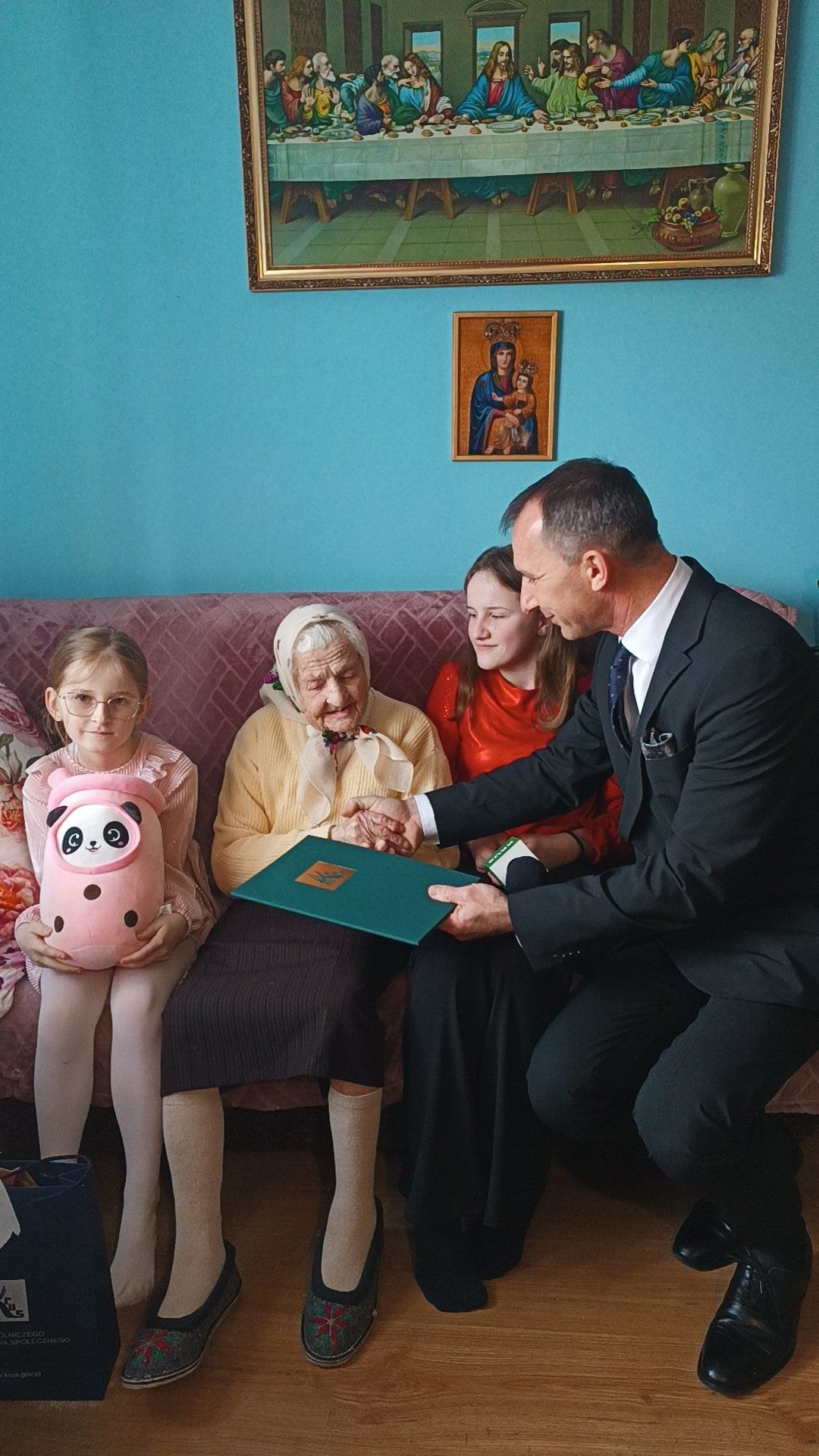 W tej wyjątkowej uroczystości mieli zaszczyt uczestniczyć przedstawiciele Kasy Rolniczego Ubezpieczenia Społecznego: Prezes Kasy Tomasz Ślusarczyk, Zastępca Dyrektora Biura Komunikacji Elżbieta Oppenauer oraz Dyrektor Oddziału Regionalnego Kasy w Rzeszowie Jan Urban, którzy złożyli życzenia szacownej Jubilatce wraz z bukietem kwiatów oraz listem gratulacyjnym Prezesa Kasy.
