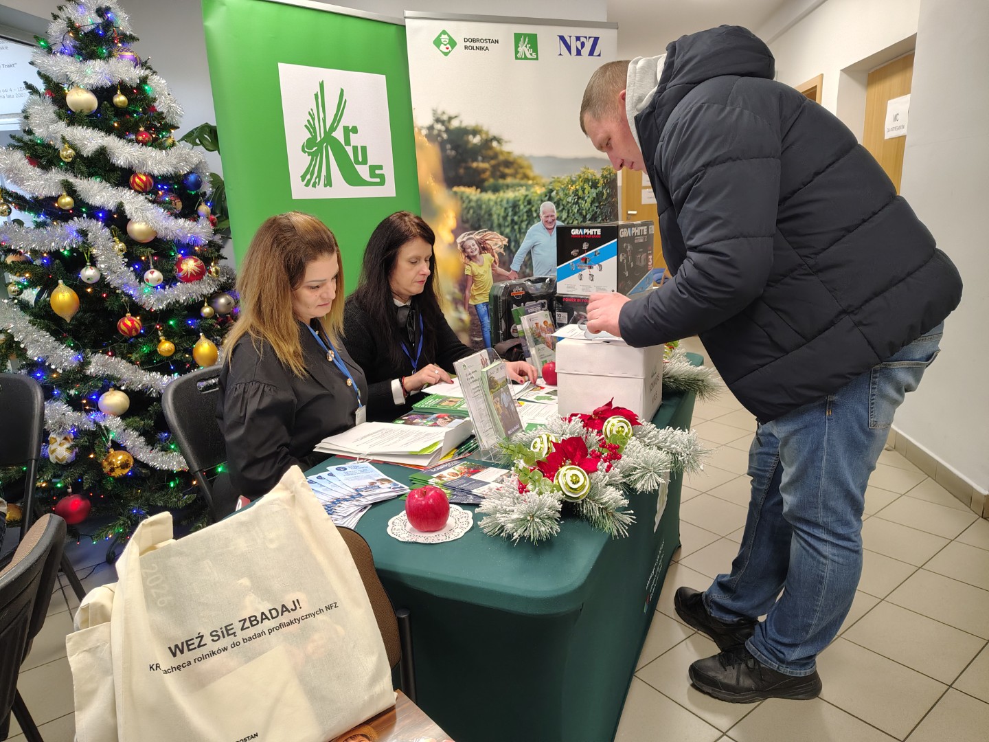 18 grudnia 2025 roku, Kasa Rolniczego Ubezpieczenia Społecznego Placówka Terenowa w Radomiu podczas akcji informacyjno-prewencyjnej pod hasłem „Weź się zbadaj”, realizowanej w ramach kampanii „Dobrostan Rolnika” wraz z Oddziałem NFZ w Radomiu zorganizowała stoisko informacyjno-prewencyjne w Urzędzie Miasta i Gminy w Skaryszewie,.