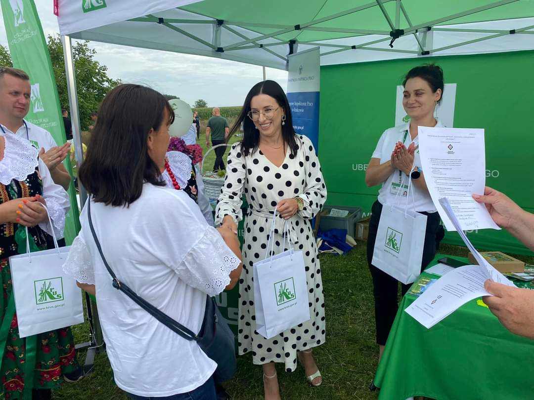Na stoisku była także możliwość uzyskania informacji dotyczących ubezpieczenia społecznego oraz rehabilitacji leczniczej realizowanej przez KRUS. Uczestnicy pikniku odwiedzający stoisko KRUS otrzymali broszury i materiały prewencyjne.