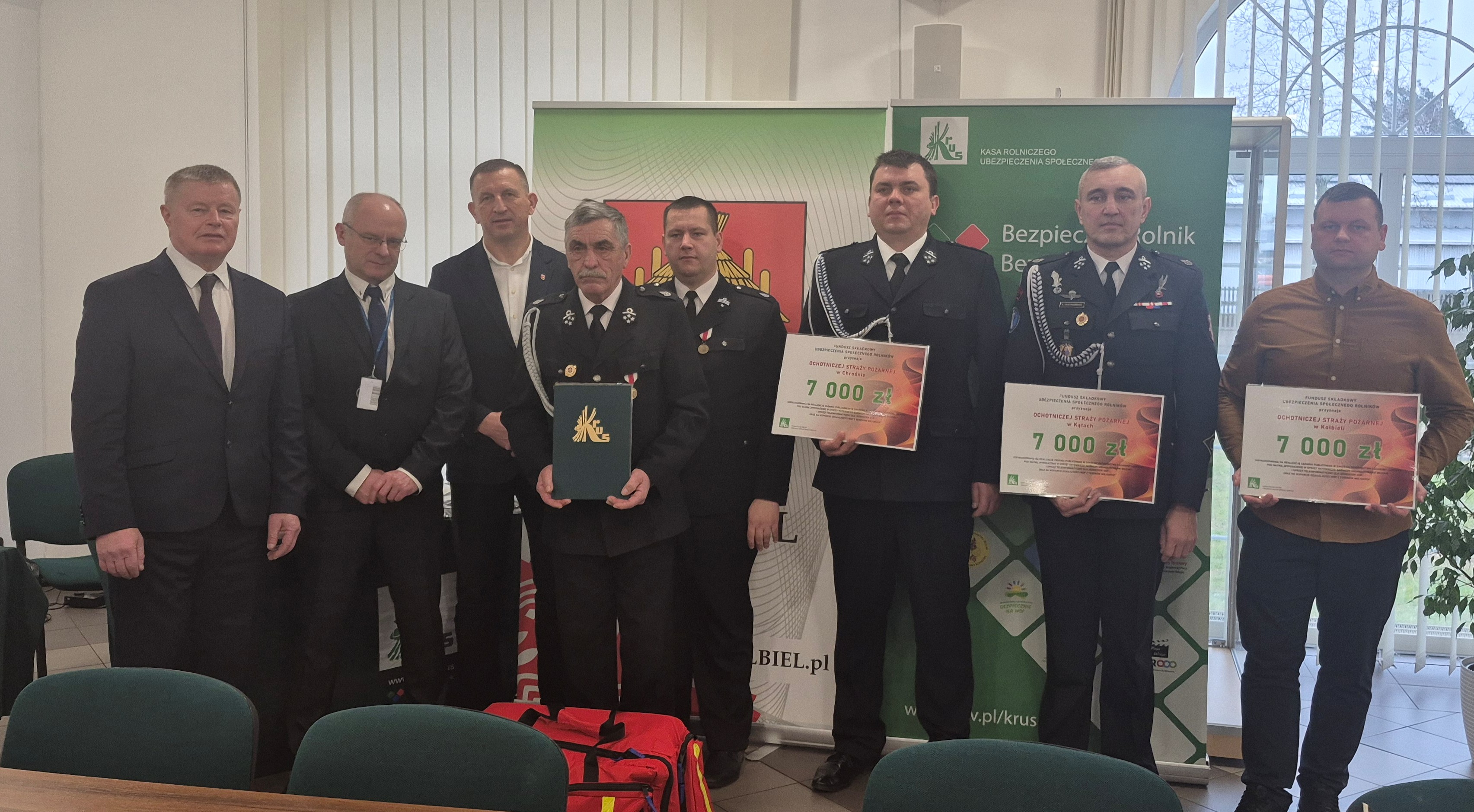 Jednostki OSP z terenu gminy Kołbiel: OSP Chrosna, OSP Kąty i OSP Kołbiel otrzymały po 7 000 zł dofinansowania.