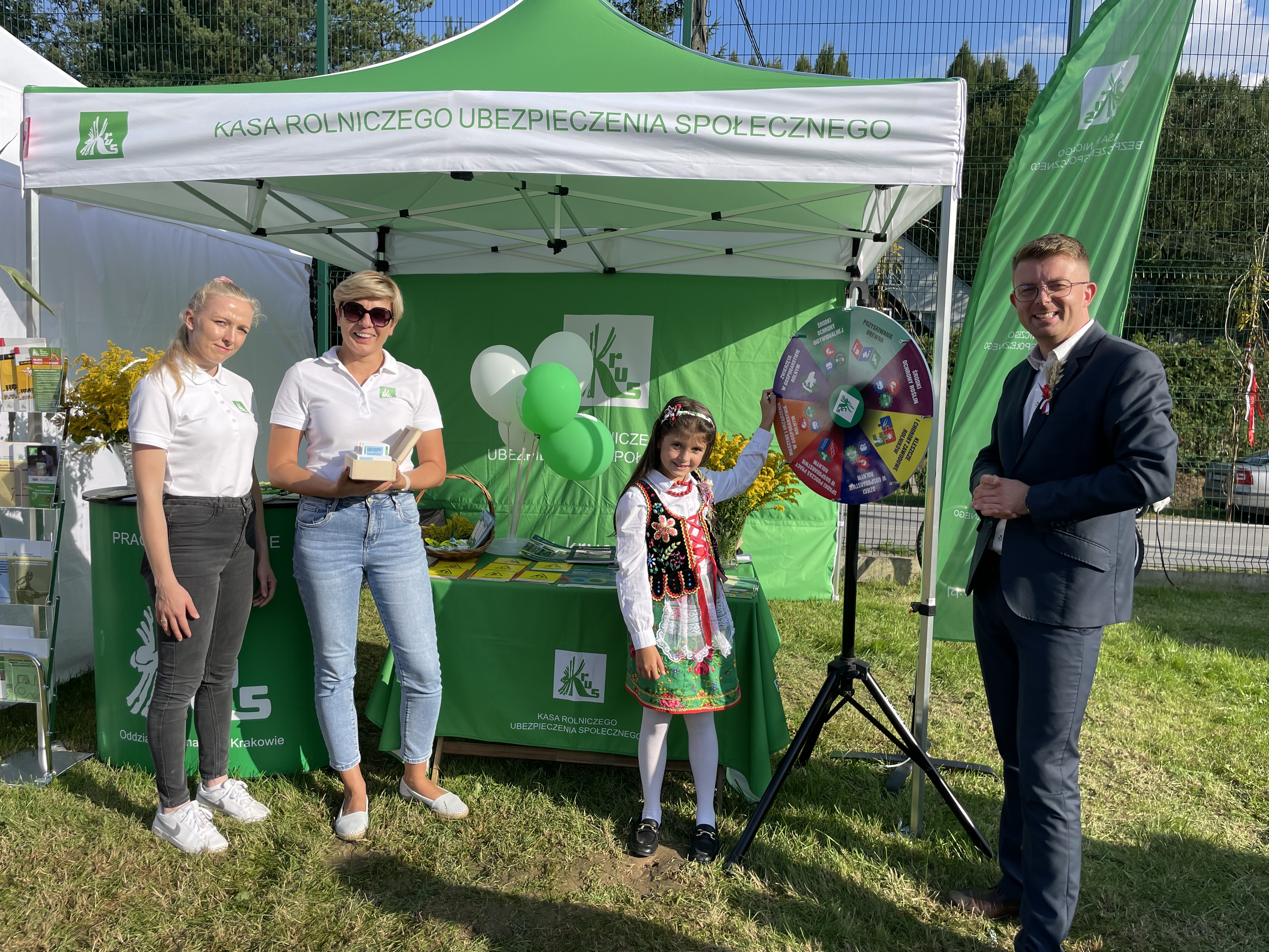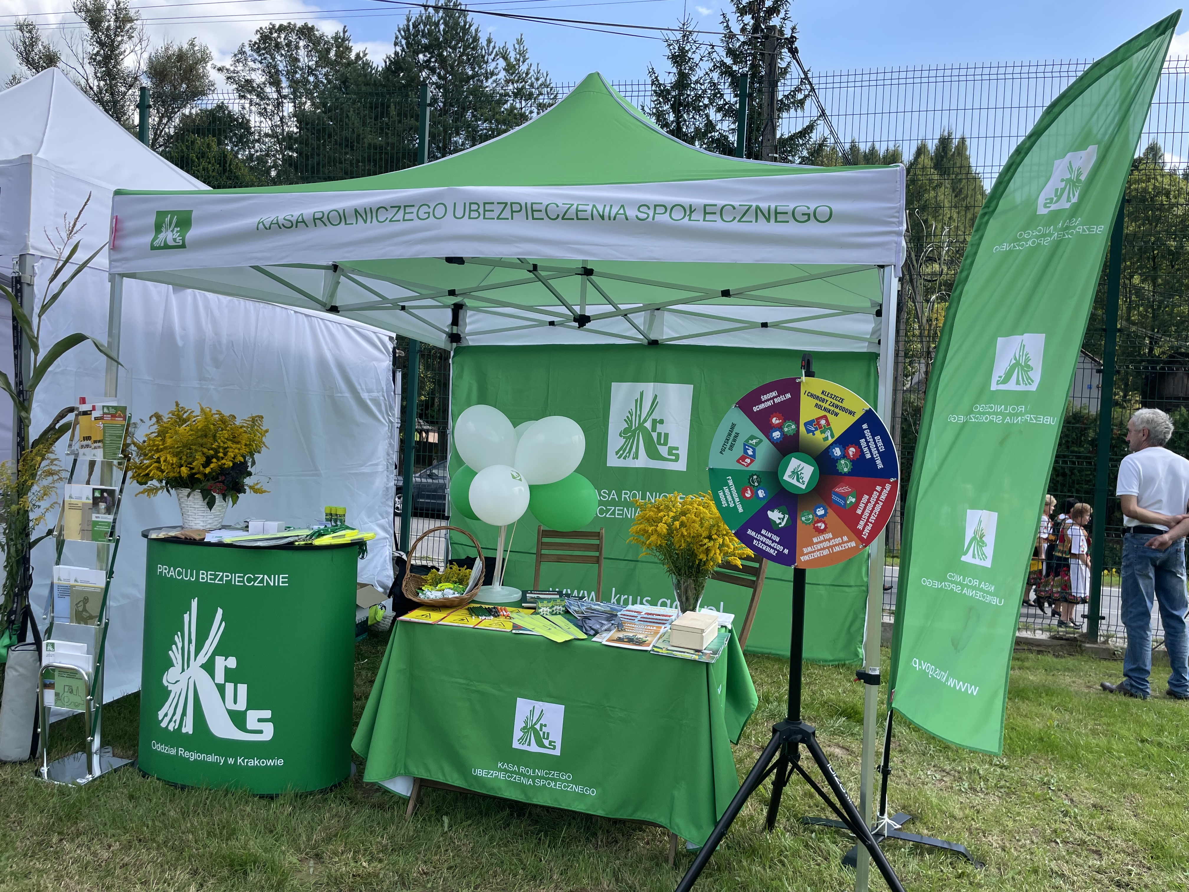 Podczas tego wydarzenia pracownicy Wydziału Prewencji, Rehabilitacji i Orzecznictwa Lekarskiego OR KRUS w Krakowie zorganizowali stoisko informacyjne. Odwiedzający stoisko mieli możliwość uzyskania informacji dotyczących ubezpieczenia społecznego oraz rehabilitacji leczniczej realizowanej przez Kasę. Dużym zainteresowaniem cieszyła się gra prewencyjna dla dzieci Koło Fortuny. Odwiedzającym stoisko rolnikóm oraz innym uczestnikom dożynek przekazano broszury i materiały prewencyjne. Oddział Regionalny reprezentował Zastępca Dyrektora Michał Mrówka.