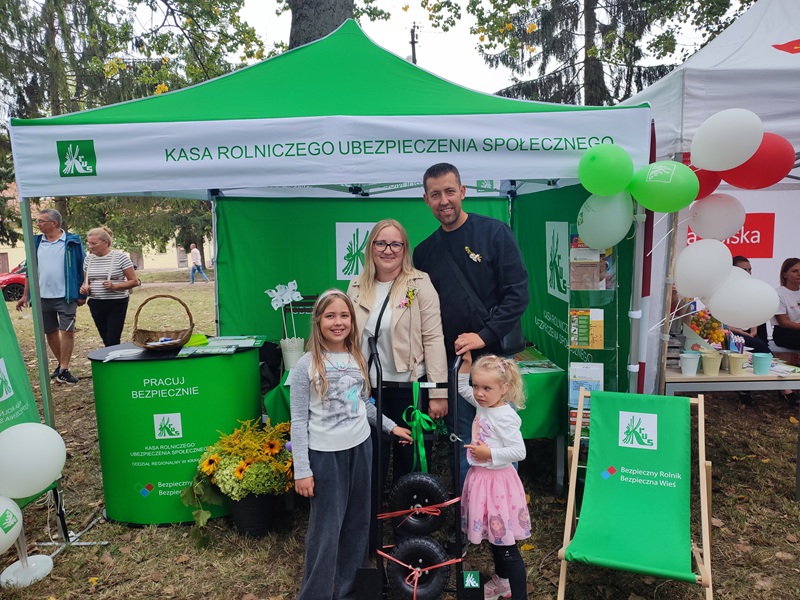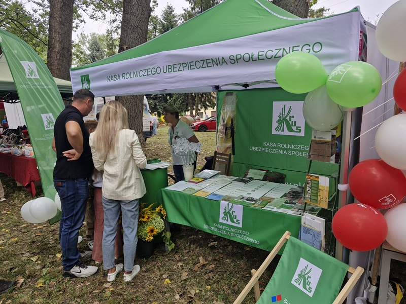 Nasze stoisko informacyjno-prewencyjne Kasy Rolniczego Ubezpieczenia Społecznego Oddział Regionalny w Krakowie, cieszyło się dużym zainteresowaniem odwiedzających. Pracownicy przeprowadzili dla osób odwiedzających stoisko konkurs z wiedzy BHP. Dla trzech osób, którzy najlepiej rozwiązali testy konkursowe zostały przygotowane atrakcyjne nagrody zwiększające bezpieczeństwo pracy. Na naszym stoisku nie zabrakło: ulotek i materiałów o bezpiecznej pracy w gospodarstwie, rozmów i porad udzielanych rolnikom przez naszych pracowników. Było gwarnie, radośnie i rodzinnie – tak jak na dożynkach być powinno! Była to świetna okazja do rozmów, wspomnień i wspólnego świętowania. Dziękujemy wszystkim, którzy do nas zajrzeli i podzielili się swoim czasem.