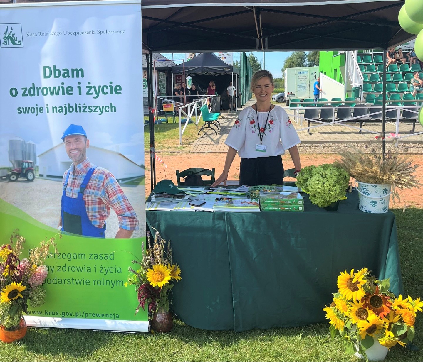 Rolnicy oraz ich domownicy, którzy odwiedzili stoisko Kasy mogli zaopatrzyć się w kamizelki odblaskowe, naklejki prewencyjne, broszury i ulotki promujące bezpieczną pracę w gospodarstwie rolnym. Nie zabrakło upominków dla dzieci, które licznie odwiedzały stoisko. Przygotowano dla nich plany lekcji, kolorowanki, balony.