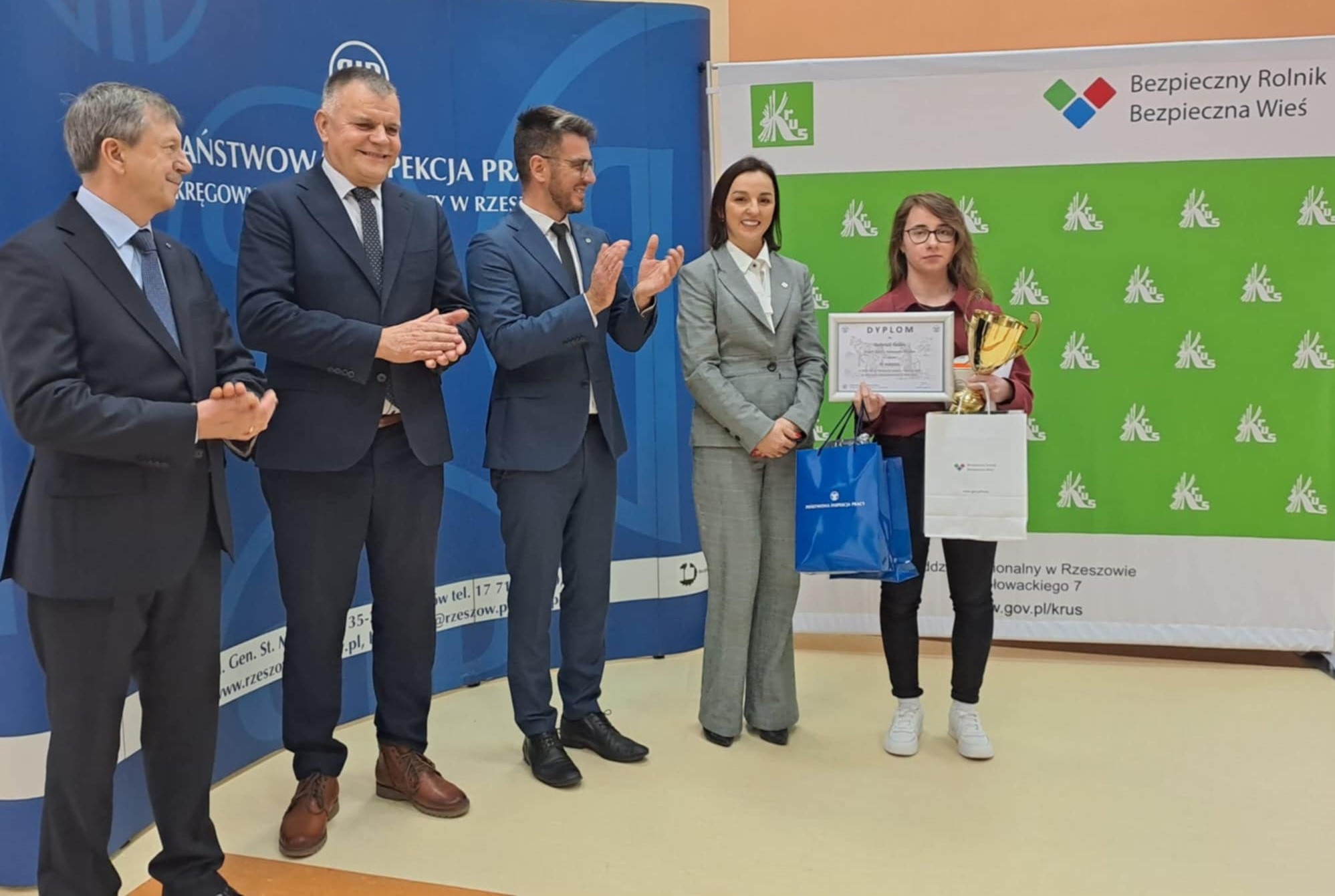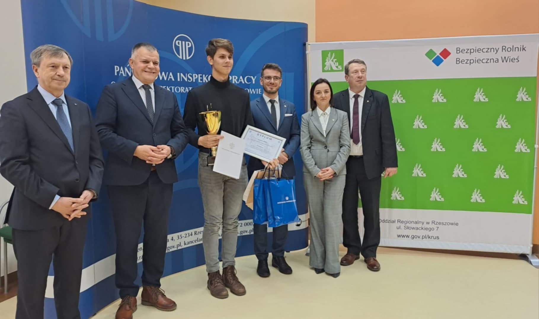 Dla laureatów oraz wszystkich uczestników Olimpiady nagrody rzeczowe ufundowali organizatorzy oraz współorganizatorzy, a wręczali je: p.o. Okręgowego Inspektora Pracy w Rzeszowie Karol Kucaj, Zastępca Dyrektora Kasy Rolniczego Ubezpieczenia Społecznego OR w Rzeszowie Dominika Porada, Dyrektor Krajowego Ośrodka Wsparcia OT w Rzeszowie Jolanta Kaźmierczak, Dyrektor Podkarpackiego Oddziału Agencji restrukturyzacji i Modernizacji Rolnictwa Błażej Borowiec, Dyrektor Podkarpackiego Ośrodka Doradztwa Rolniczego w Boguchwale Zbigniew Micał, Dyrektor Biura Podkarpackiej Izby Rolniczej Wiesław Lada oraz Członek Zarządu Podkarpackiego Centrum Hurtowego AGROHURT S.A. Dariusz Baran.