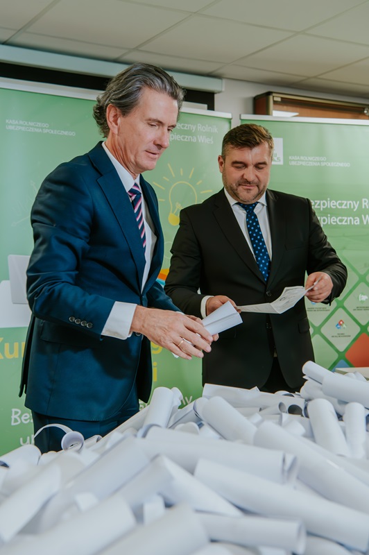 Z prawie 2 200 zgłoszeń, które wpłynęły do Biura Prewencji, Prezes KRUS Dariusz Rohde oraz Zastępca Prezesa KRUS Sylwia Dudzik wylosowali 100 laureatów, którzy otrzymają hulajnogi.