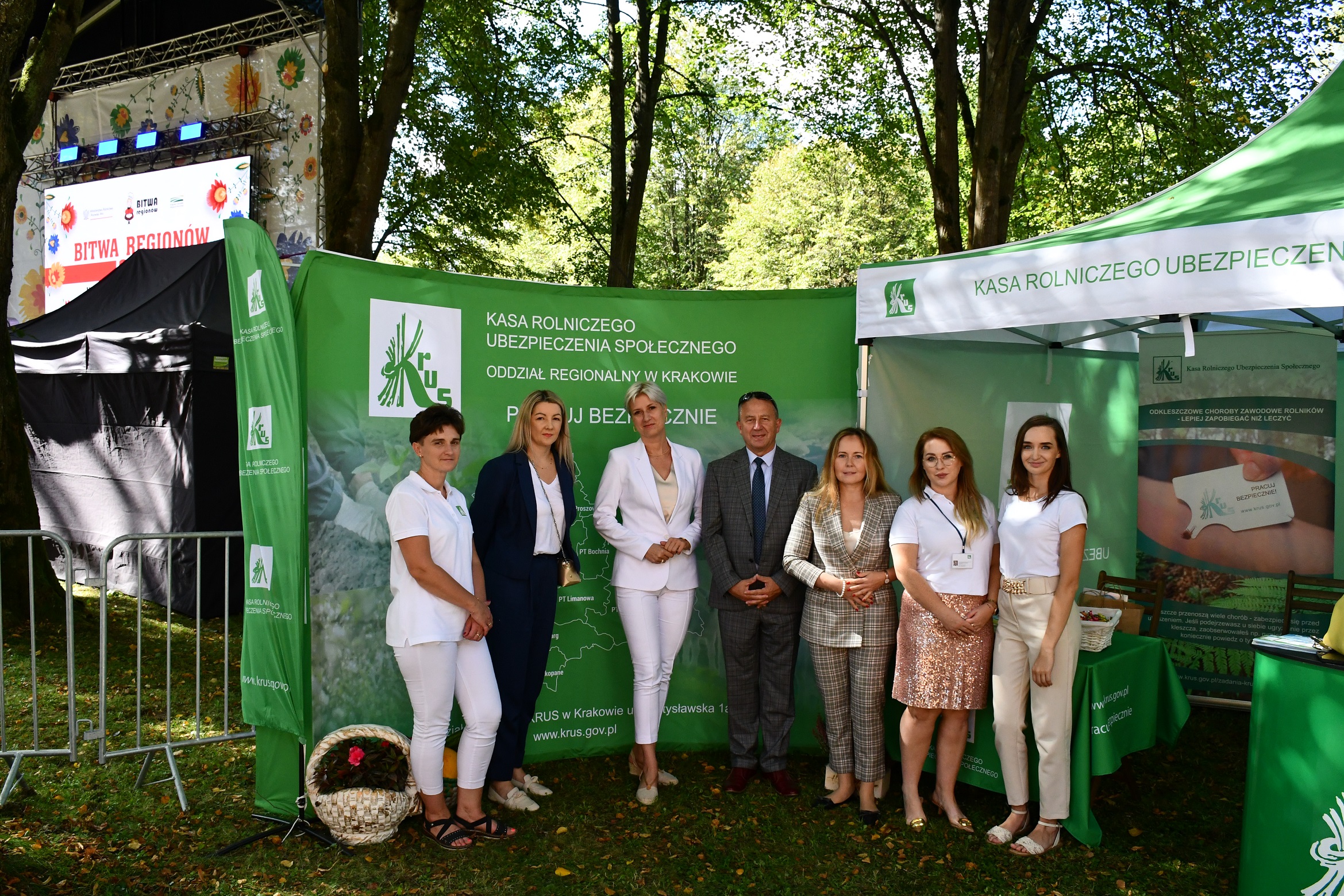Podczas Małopolskiego finału Bitwy Regionów Placówka Terenowa KRUS w Gorlicach zorganizowała stoisko, przy którym pracownicy promowali bezpieczną pracę w gospodarstwie rolnym. Nie zabrakło wspólnej zabawy przy grach edukacyjnych, które przyciągnęły uwagę szczególnie najmłodszych.