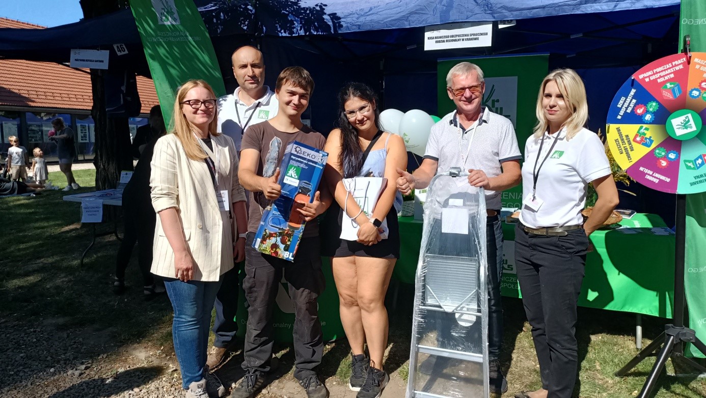 Pracownicy Wydziału Prewencji, Rehabilitacji i Orzecznictwa Lekarskiego OR KRUS w Krakowie zorganizowali stoisko informacyjne. Odwiedzający stoisko mieli możliwość uzyskania informacji dotyczących ubezpieczenia społecznego oraz rehabilitacji leczniczej realizowanej przez Kasę. Dużym zainteresowaniem cieszyła się gra prewencyjna Koło Fortuny.