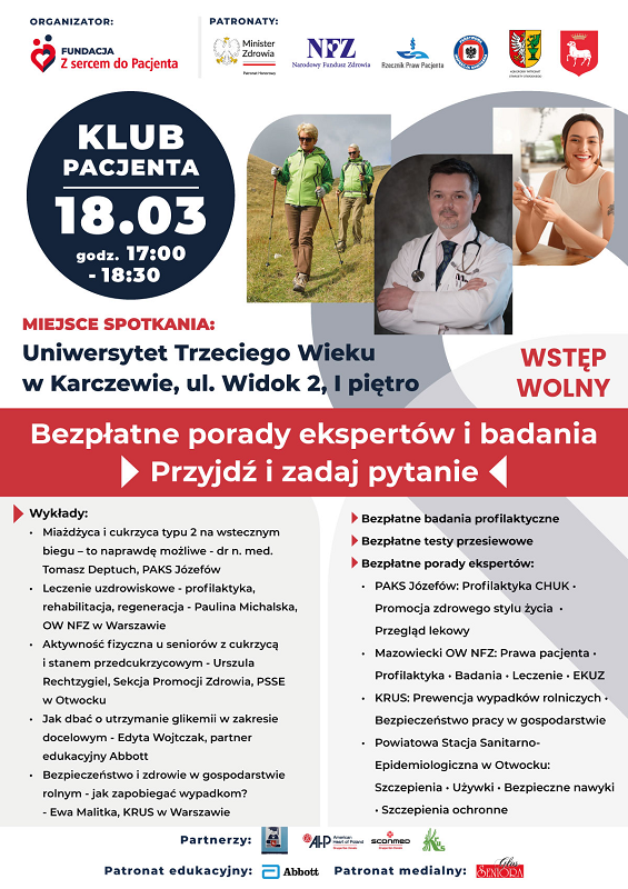 Wydarzenie pod nazwą Klub Pacjenta skierowano do mieszkańców gminy Karczew, którzy tego dnia mogli skorzystać z cyklu bezpłatnych badań diagnostycznych oraz porad dotyczących profilaktyki i wczesnego wykrywania chorób cywilizacyjnych. Oddział Regionalny KRUS w Warszawie został zaproszony do współorganizacji tego wydarzenia jako partner przez powołaną w 2022 roku Fundację „Z sercem do Pacjenta”. Podczas wydarzenia przeprowadzono wykłady: