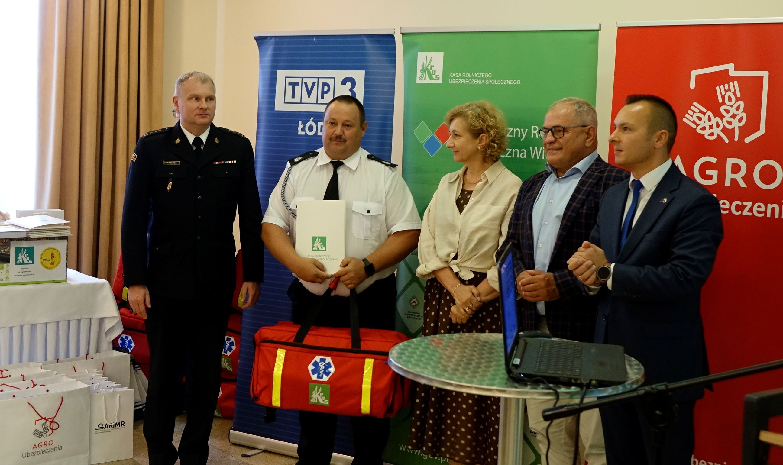 Po części szkoleniowej nastąpiło wręczenie dziesięciu zestawów ratownictwa przedmedycznego jednostkom OSP z województwa łódzkiego.