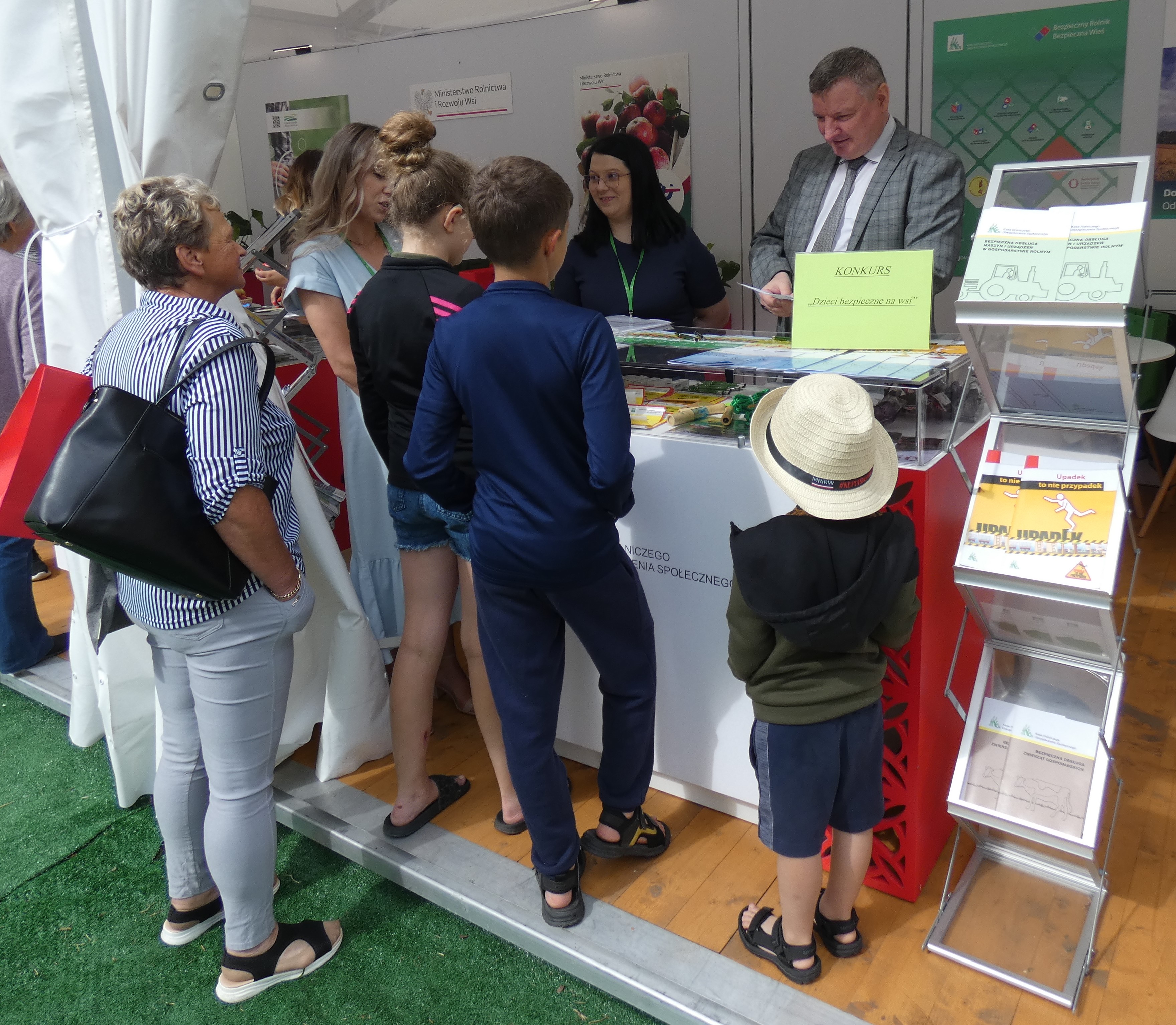 Szczególną atrakcją był konkurs wiedzy dla najmłodszych pod hasłem „Dzieci bezpieczne na wsi”. Młodzi uczestnicy z zaangażowaniem odpowiadali na pytania dotyczące zasad bezpieczeństwa w gospodarstwie. Każde dziecko, które udzieliło poprawnej odpowiedzi, otrzymało nagrodę niespodziankę – ale zdecydowanie największą nagrodą była zdobyta wiedza, która może kiedyś uratować zdrowie lub życie.