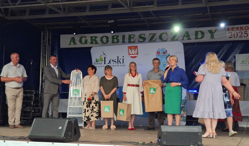 27 lipca 2025 na scenie Targów Gabriela Bałut Kierownik PT KRUS w Sanoku razem ze Starostą Leskim Wojciechem Stelmachem wręczyli podziękowania i nagrody dla uczestników ogólnopolskiego konkursu Bezpieczne Gospodarstwo Rolne 2025.