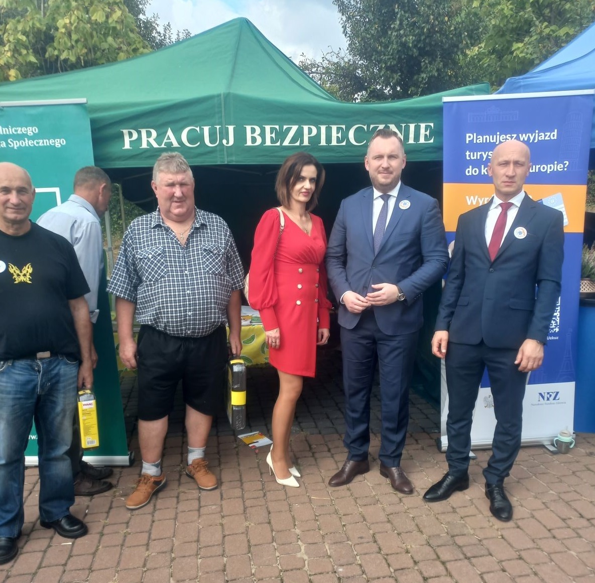 Pracownicy Placówki zorganizowali stoisko informacyjne KRUS zaopatrzone w materiały prewencyjne o tematyce BHP. Osoby odwiedzające stoisko miały możliwość uzyskania informacji z zakresu działalności Kasy. Dla dzieci przygotowane były drobne nagrody i kolorowe broszurki. Podczas imprezy ogłoszono konkurs „Pracuj bezpiecznie”. Chętni do wzięcia udziału zgłaszali się do stoiska, gdzie wykazywali się wiedzą podczas rozwiązywania testu z zasad BHP. Po zakończeniu konkursu i sprawdzeniu testów wyłoniono laureatów, którym wręczone zostały nagrody ufundowane przez KRUS. Podczas dożynek stoisko informacyjne KRUS odwiedziło około 50 osób, w tym także liczna grupa dzieci.