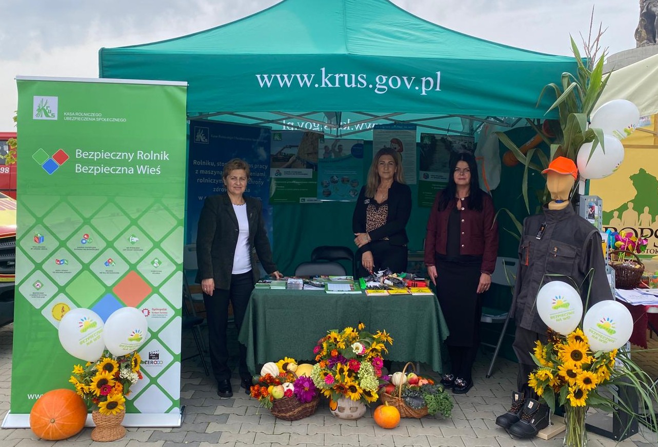 Placówka Terenowa KRUS w Kolnie, kierowana przez Katarzynę Obrycką, przygotowała stoisko informacyjno-prewencyjne. Pracownicy Kasy udzielali porad dotyczących bezpiecznej pracy w gospodarstwie rolnym, rehabilitacji leczniczej oraz dostępnych form ubezpieczeń i świadczeń. Na stoisku rozdawano broszury oraz materiały prewencyjne promujące zasady BHP w rolnictwie, a także udzielano krótkich konsultacji.