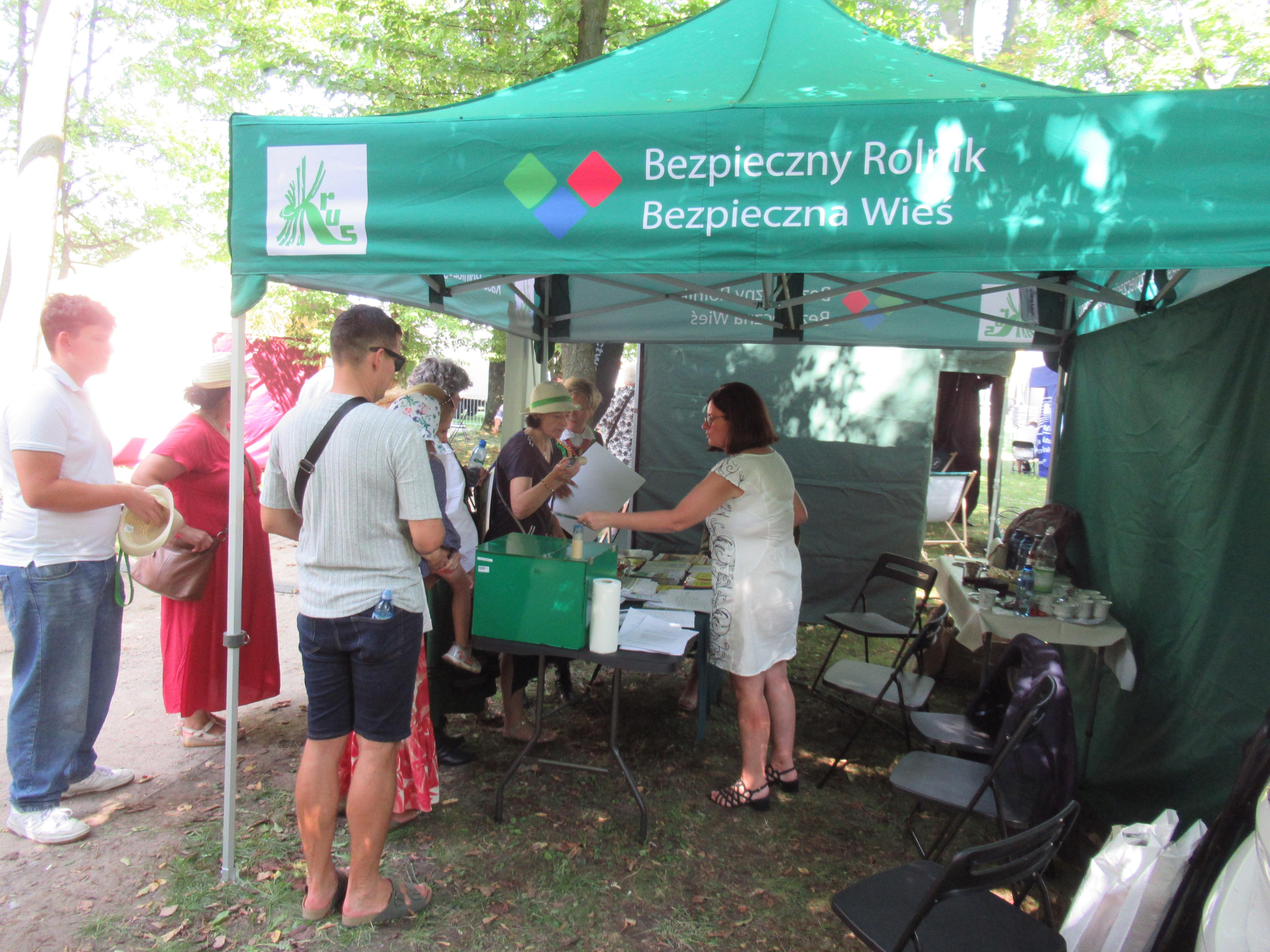 Zaopatrzone w broszury i ulotki o tematyce obejmującej działalność KRUS stoisko cieszyło się dużym zainteresowaniem wśród osób uczestniczących w uroczystościach dożynkowych.