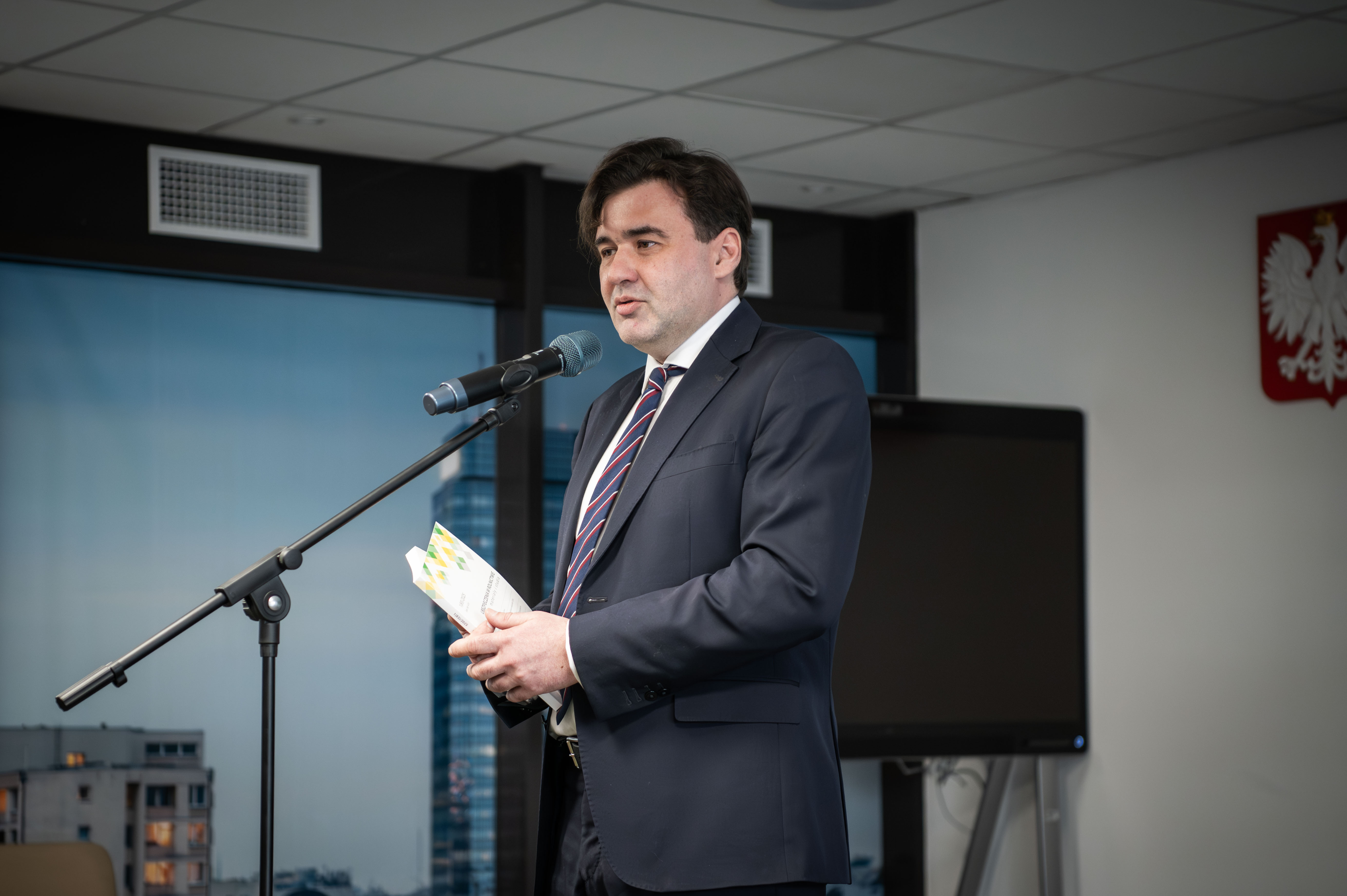 Radca Prezesa, dr Krzysztof Księżopolski, przedstawił działania KRUS w obszarze współpracy naukowej, rozwoju czasopisma Materiały i Studia oraz przygotowań do konferencji eksperckich.