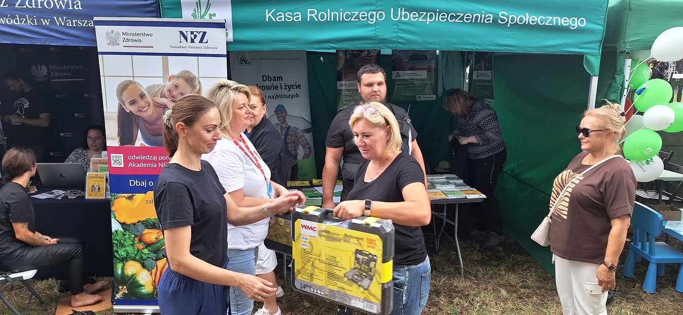 Oddział Regionalny Kasy Rolniczego Ubezpieczenia Społecznego w Warszawie zorganizował stoisko informacyjno-prewencyjne, przy którym pracownicy Kasy udzielali informacji z zakresu zasad bezpiecznej pracy w gospodarstwie rolnym, rehabilitacji leczniczej, sposobów zgłaszania wypadku przy pracy w rolnictwie do KRUS oraz ubezpieczeń i świadczeń. Osoby odwiedzające stoisko otrzymały broszury, ulotki propagujące bezpieczną pracę w rolnictwie, a także kalendarze prewencyjne dla rolników na 2025 rok. Chętni rolnicy mogli sprawdzić swoją wiedzę z bezpieczeństwa pracy w konkursie pod nazwą „Pracuj Bezpiecznie!” oraz wziąć udział w pokazie środków ochrony osobistej stosowanych podczas pracy z chemią rolniczą. Laureaci konkursu otrzymali nagrody rzeczowe ufundowane przez KRUS.
