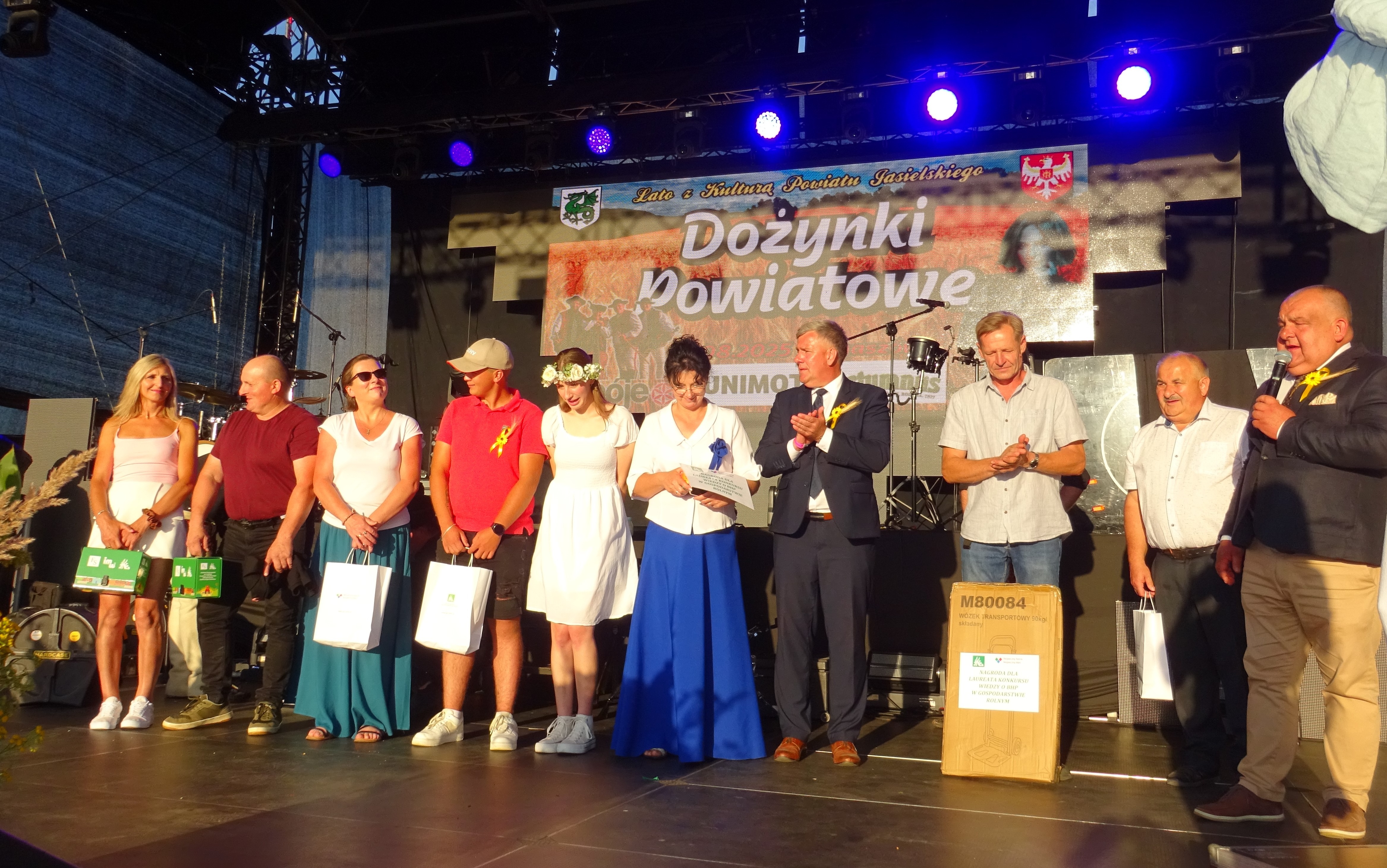 Zadaniem uczestnika konkursu było udzielenie odpowiedzi na zagadnienia związane z wylosowaną na „Kole Bezpieczeństwa” jedną z kampanii prewencyjnych prowadzonych przez KRUS w 2025 roku. Do konkursu przystąpiło 54 osoby. Zgodnie z Regulaminem konkursu – 3 osoby otrzymało nagrody rzeczowe, ponadto komisja postanowiła przyznać cztery wyróżnienia. Oficjalnego wręczenia nagród oraz wyróżnień w konkursie dokonał Dyrektor Oddziału Regionalnego KRUS w Rzeszowie Jan Urban, w obecności włodarza Gminy Nowy Żmigród Grzegorza Bary. Stoisko informacyjno-prewencyjne KRUS cieszyło się bardzo dużym zainteresowaniem ze strony rolników i ich domowników, obecnych na Dożynkach Powiatowych i Lata z Kulturą Powiatu Jasielskiego.