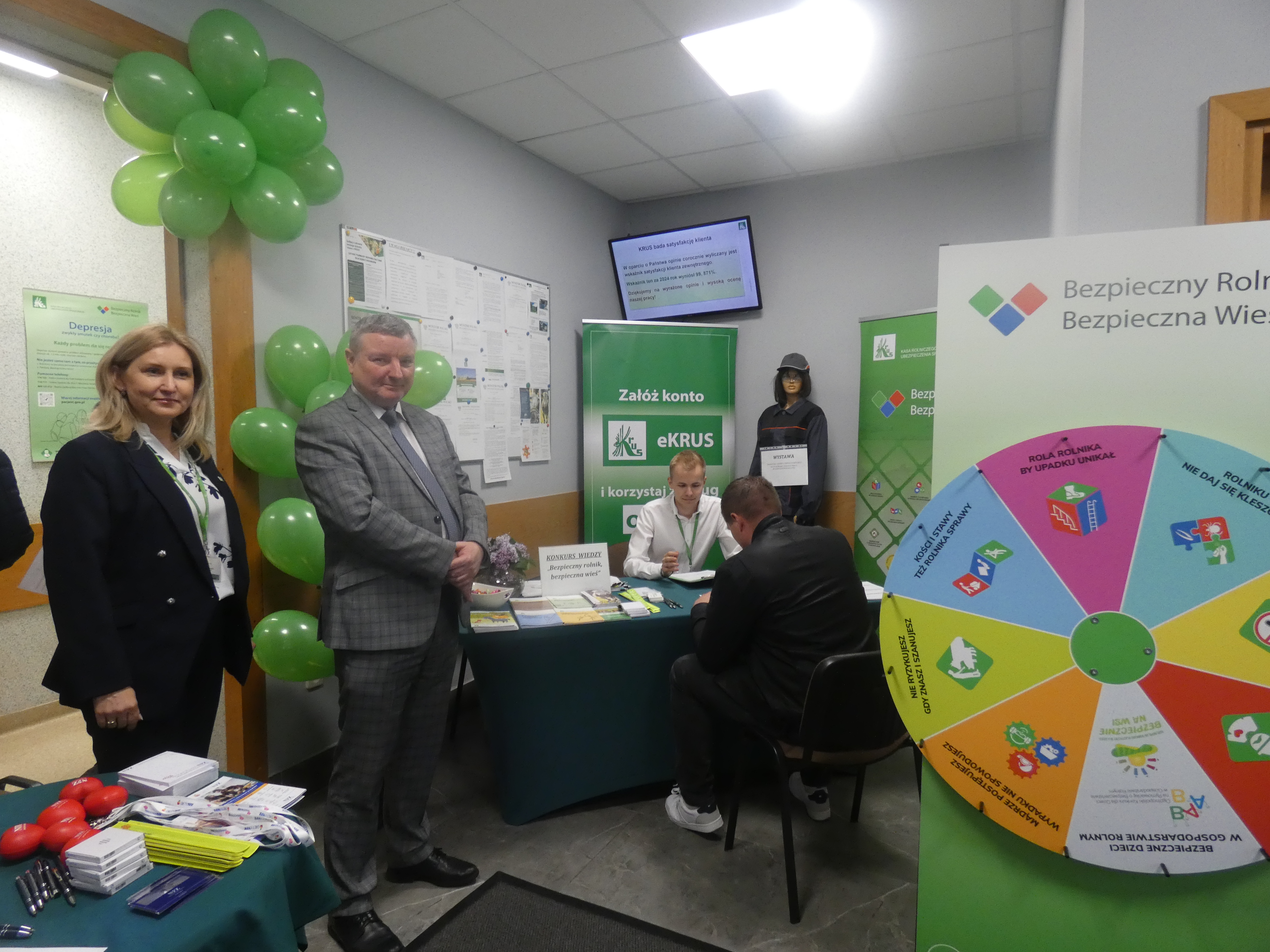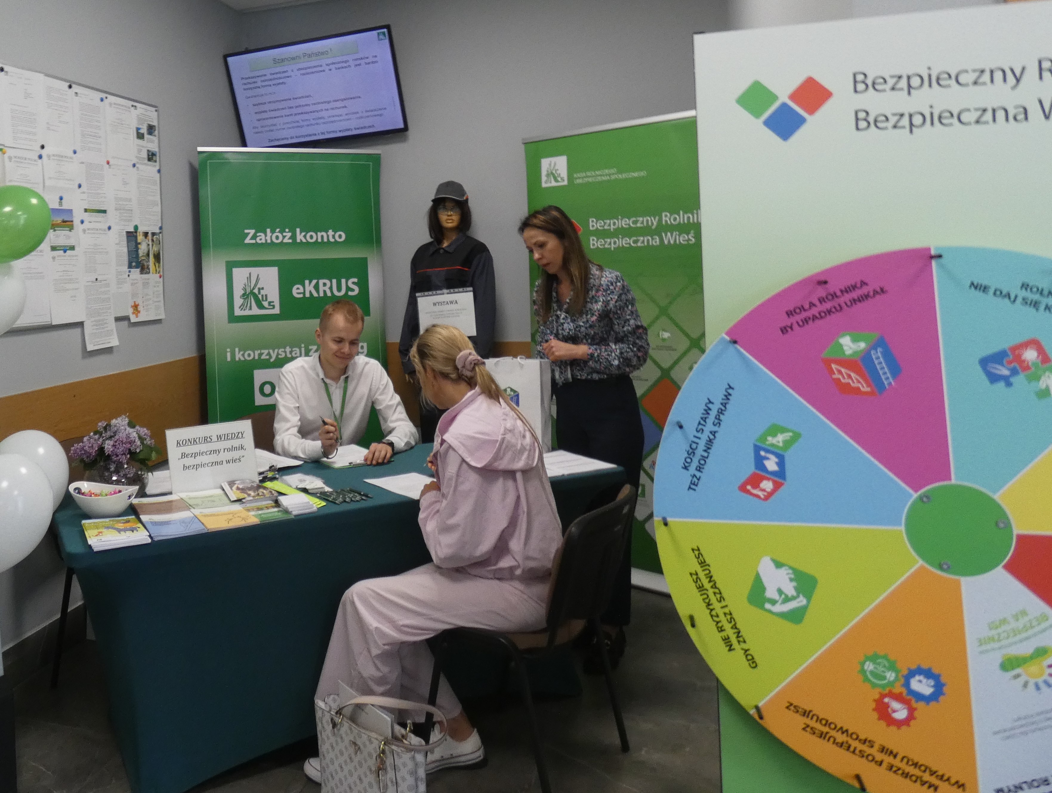 Nie zabrakło także atrakcji – osoby, które tego dnia założyły konto na portalu eKRUS, mogły sprawdzić swoją wiedzę w konkursie „Bezpieczny Rolnik, Bezpieczna Wieś” zdobywając nagrody rzeczowe ufundowane przez KRUS. Dodatkowo pracownicy ds. prewencji zorganizowali pokaz odzieży ochronnej, przypominając, że odpowiedni strój to nie tylko wygoda, ale przede wszystkim bezpieczeństwo podczas pracy.
