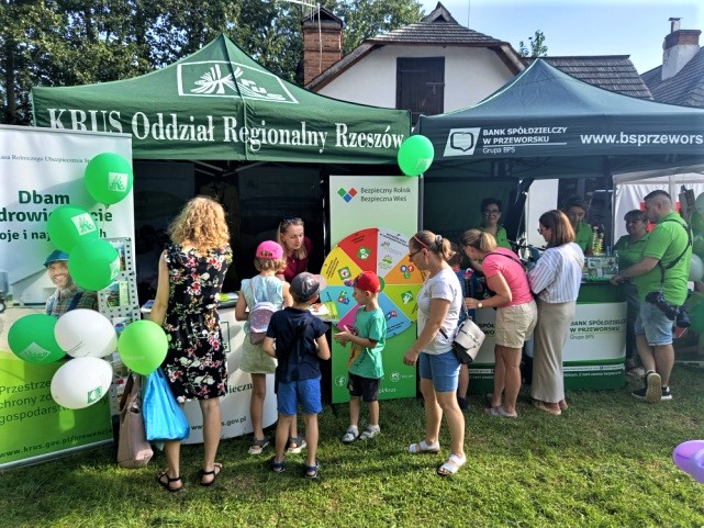 PT KRUS w Przeworsku podczas XVII Powiatowego Święta Chleba na terenie Zajazdu Pastewnik zorganizowała stoisko informacyjno-prewencyjne, przy którym udzielano informacji z zakresu działalności Kasy, a także przeprowadzono konkurs wiedzy pod hasłem: „Rola rolnika, by upadku unikał”, „Mądrze postępujesz – wypadku nie spowodujesz”. Działanie to miało na celu propagowanie wiedzy na temat bezpieczeństwa pracy rolników i ich rodzin oraz promocję zasad ochrony zdrowiai życia w gospodarstwach rolnych. Zwrócenie uwagi na sposoby zapobiegania wypadkom i chorobom zawodowym rolników, głównie związanych z upadkami osób, pochwyceniem przez ruchome elementy maszyn i urządzeń, podczas obsługi zwierząt, zapobieganie boreliozie oraz zwiększenie bezpieczeństwa dzieci podczas pracy i zabawy na terenie gospodarstwa rolnego.