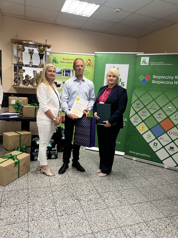 Laureaci etapu regionalnego konkursu jak również wszyscy uczestnicy otrzymali pamiątkowe dyplomy oraz cenne nagrody – urządzenia zwiększające bezpieczeństwo pracy w gospodarstwie rolnym. Fundatorami nagród była Kasa Rolniczego Ubezpieczenia Społecznego, Starostwo Powiatowe w Ostrołęce, Państwowa Inspekcja Pracy oraz Mazowiecka Izba Rolnicza.