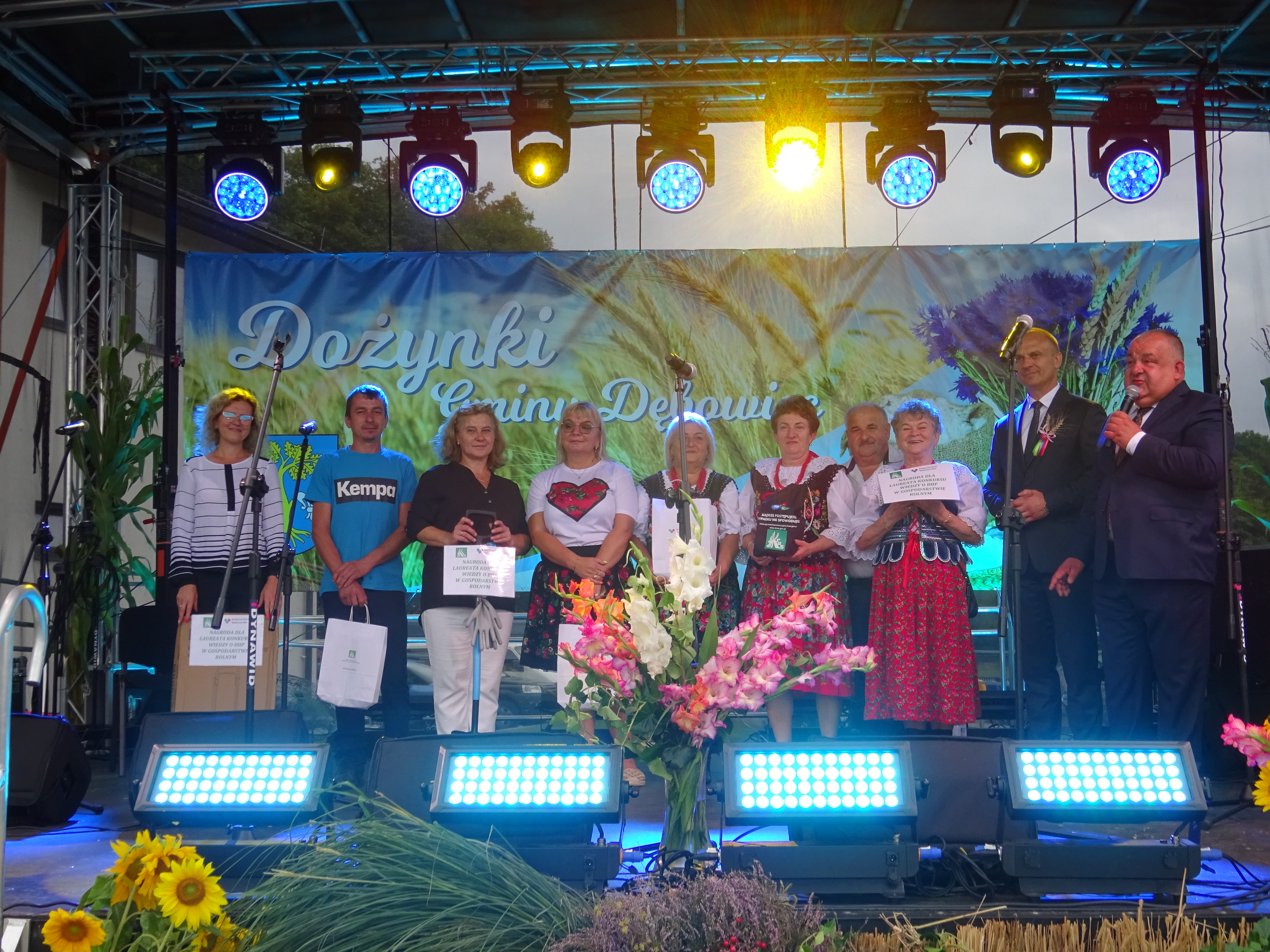 Po niej nastąpiło oficjalne powitanie gości przez Wójta Gminy Dębowiec Marcina Bolka, a Zespół Ludowy „Kaśki” w piękny i tradycyjny sposób przedstawił symbolikę święta plonów. Następnie starostowie dożynek przekazali Wójtowi Gminy chleb, który został podzielony między uczestnikami jako symbol jedności i wdzięczności za zebrane plony.