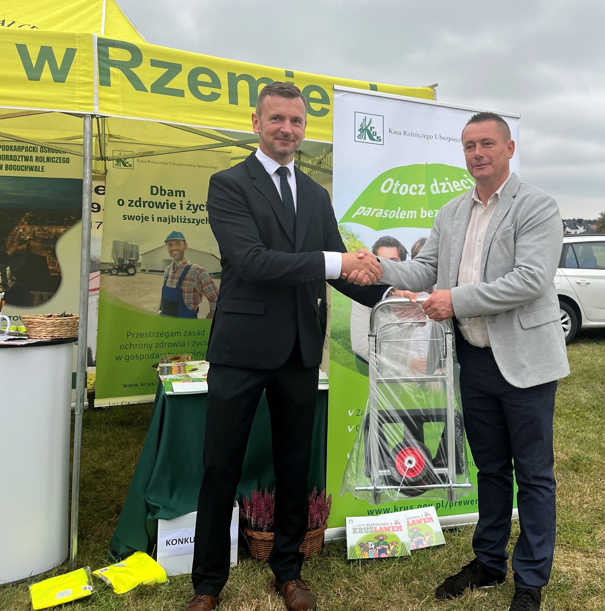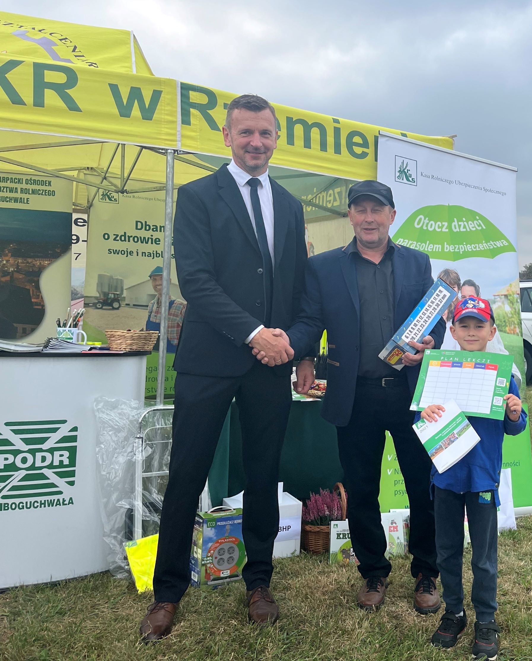 Ponadto pracownicy Kasy przeprowadzili konkurs testowy pod nazwą „Bezpieczna Wieś”, w którym rolnicy odwiedzający stoisko mogli sprawdzić swoją wiedzę na temat bezpiecznych zachowań w miejscu swojej codziennej pracy. Laureaci konkursu otrzymali nagrody ufundowane przez KRUS – wręczenia dokonał kierownik Placówki Terenowej w Mielcu Sławomir Majka.