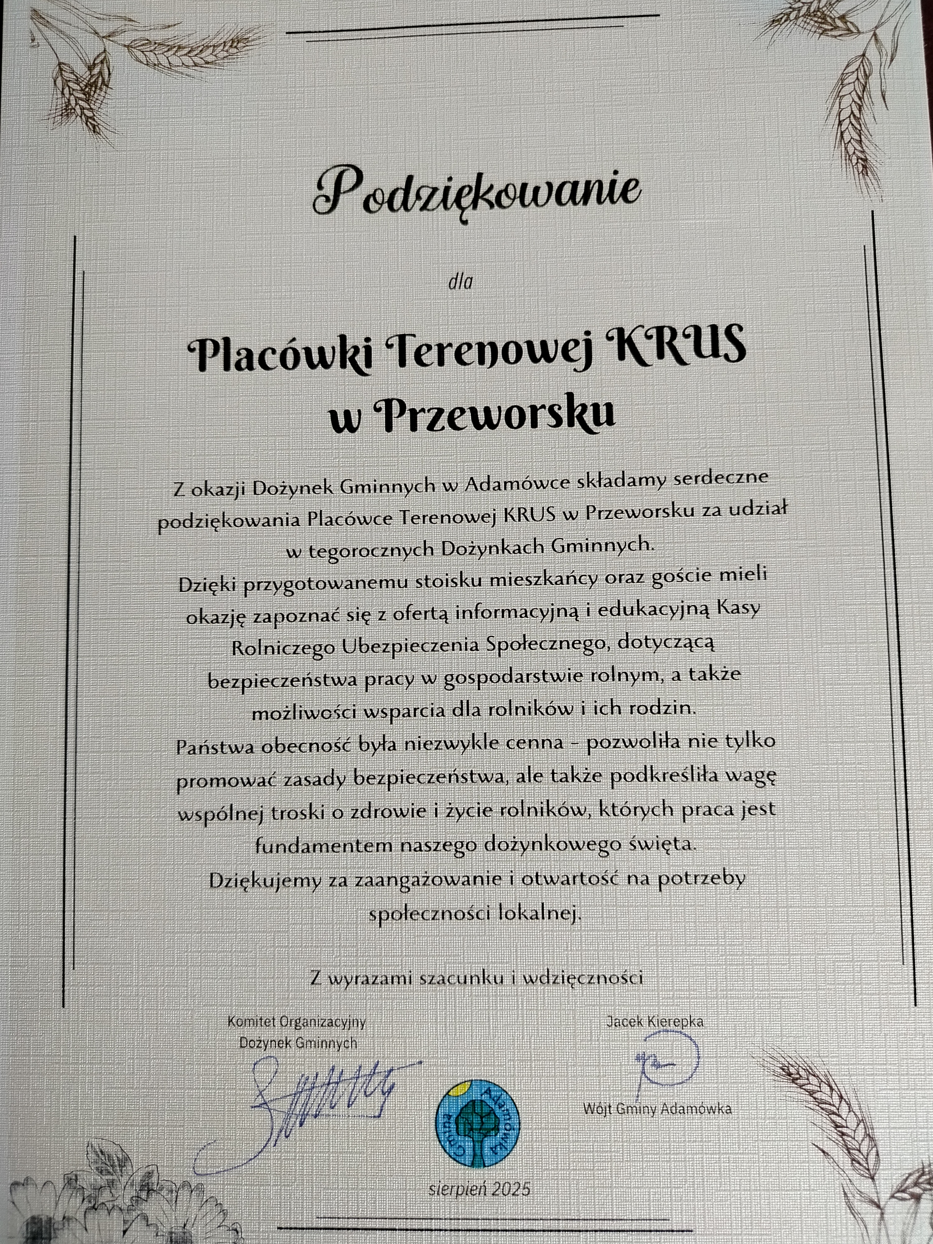 Placówka Terenowa KRUS w Przeworsku wystawiła stoisko informacyjno-prewencyjne, przy którym uczestnicy mogli uzyskać interesujące ich informacje z zakresu działalności Kasy: ubezpieczenia społecznego rolników, świadczeń emerytalno-rentowych, rehabilitacji leczniczej, a także prewencji wypadkowej. Była to doskonała okazja, by dowiedzieć się więcej także o bezpieczeństwie pracy w gospodarstwie rolnym.