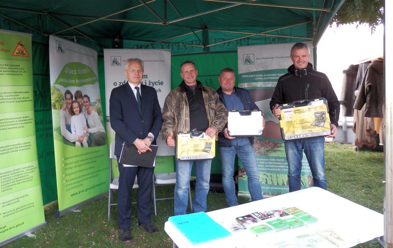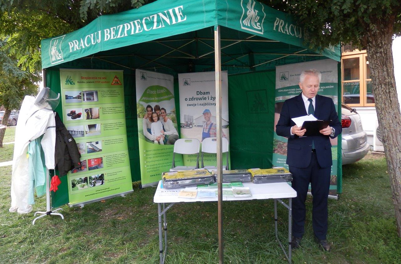 Na stoisku Placówki Terenowej KRUS w Węgrowie można było uzyskać informacje dotyczące ubezpieczenia społecznego rolników, świadczeń, rehabilitacji leczniczej oraz prewencji wypadkowej, dostępne były ulotki i broszury o bezpieczeństwie pracy w rolnictwie, a także kalendarze KRUS na 2025 rok. Zorganizowano pokaz środków ochrony osobistej stosowanej podczas zabiegów chemizacyjnych oraz konkurs wiedzy dla rolników z atrakcyjnymi nagrodami rzeczowymi. Rozstrzygnięcie konkursu odbyło się na stoisku przy udziale Kierownika Placówki Terenowej w Węgrowie Jarosława Gago.