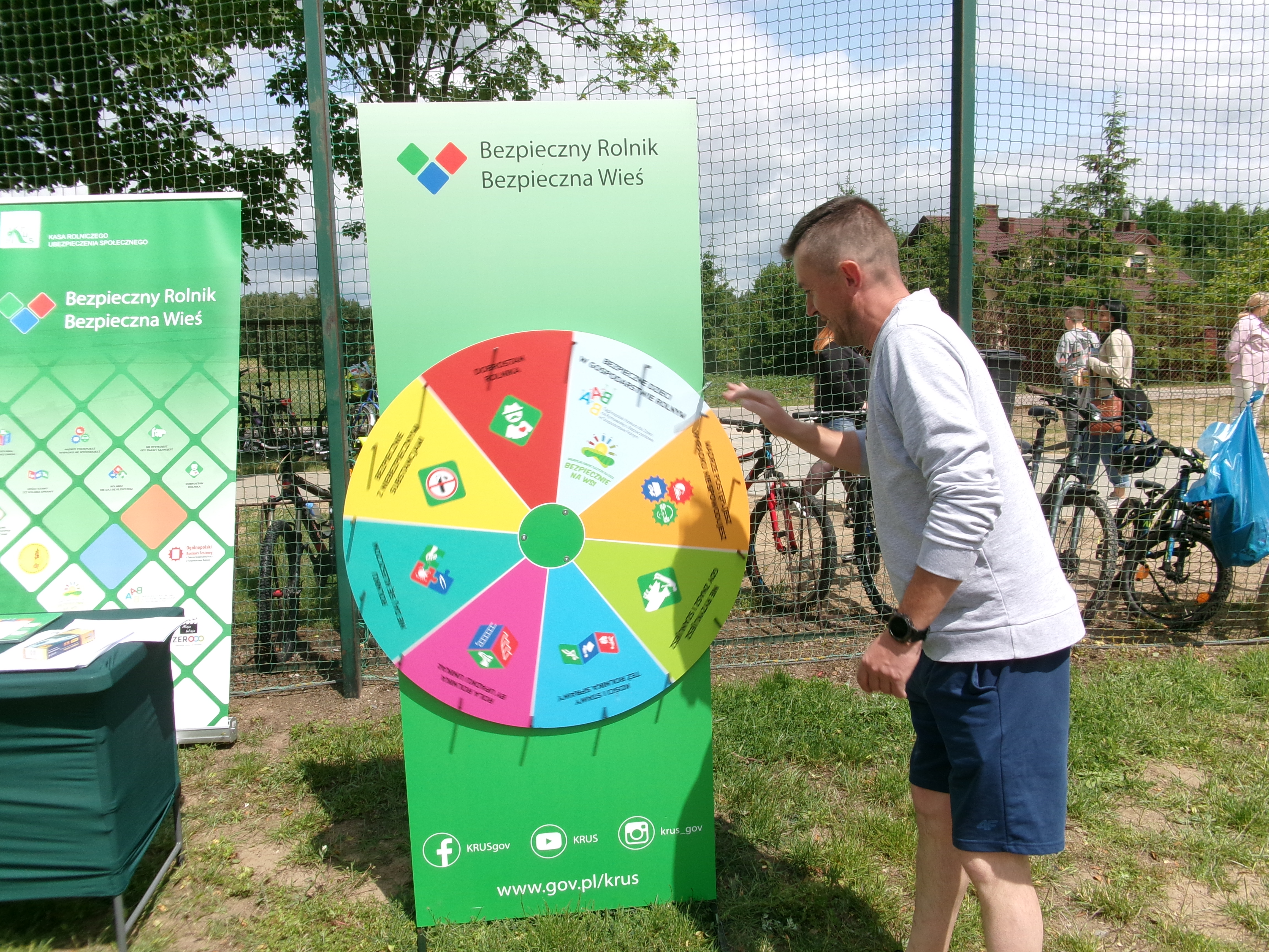 Stoisko zostało wzbogacone o grę prewencyjną w formie Koła bezpieczeństwa dla rolników i mieszkańców terenów wiejskich w ramach projektu „Bezpieczny Rolnik, Bezpieczna Wieś”. Gra polegała na zakręceniu kołem i wylosowaniu jednej z kampanii prewencyjnych KRUS. Uczestnicy po poprawnej odpowiedzi na pytanie otrzymali materiały prewencyjne poprawiające bezpieczeństwo pracy rolniczej oraz broszurki o bezpiecznej pracy w gospodarstwie rolnym.