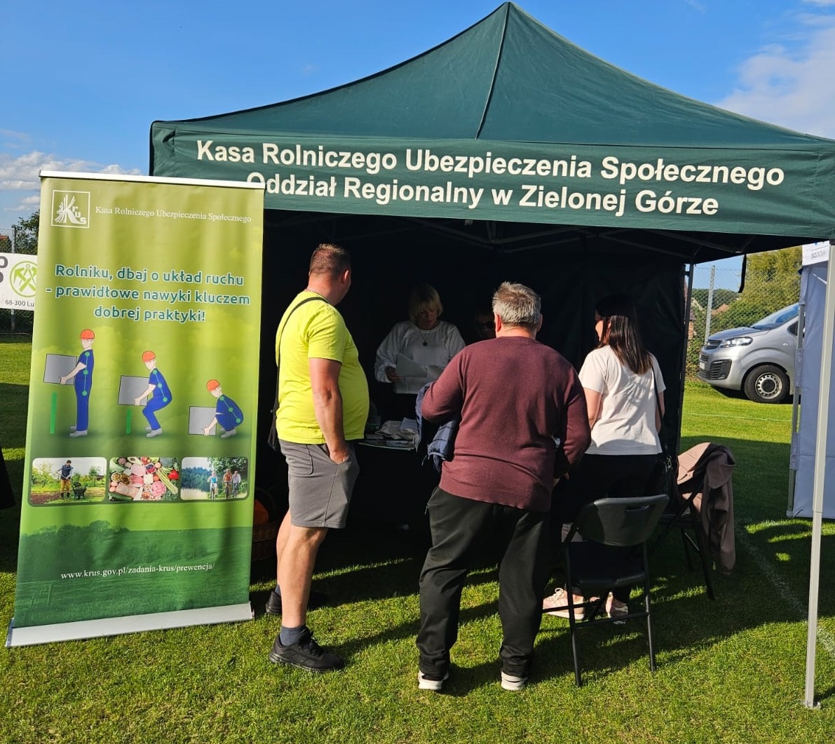 13 września 2025 roku, Placówka Terenowa Kasa Rolniczego Ubezpieczenia Społecznego w Żarach przygotowała stoisko informacyjno-prewencyjne podczas Dożynek Gminnych w Górzynie.