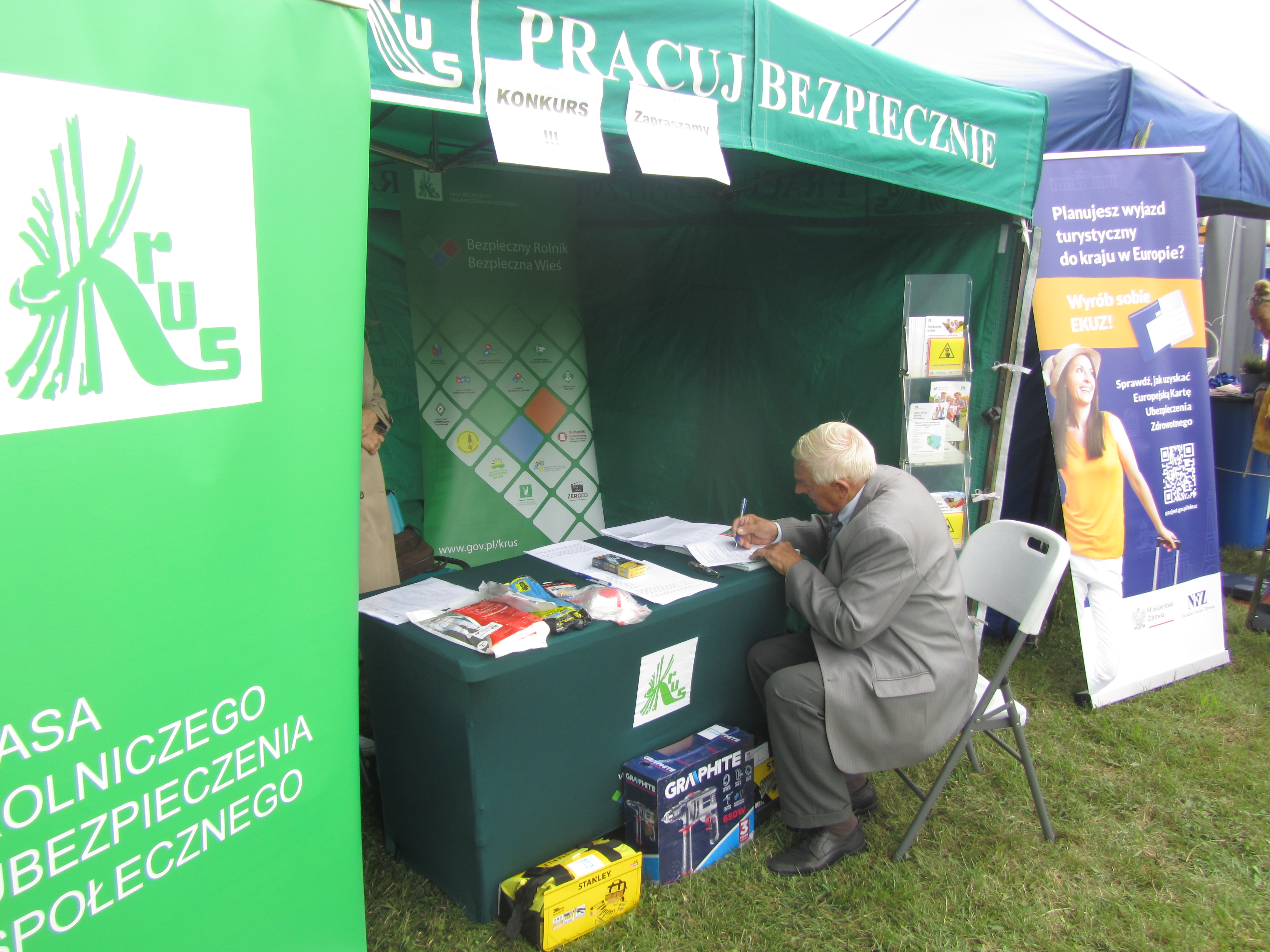 Placówka Terenowa KRUS w Ciechanowie wystawiła stoisko informacyjno-prewencyjne, na którym uczestnicy mogli uzyskać interesujące ich informacje z zakresu działalności Kasy: ubezpieczenia społecznego rolników, świadczeń emerytalno-rentowych, rehabilitacji leczniczej, a także prewencji wypadkowej. Była to doskonała okazja, by dowiedzieć się więcej o bezpieczeństwie pracy w gospodarstwie rolnym. Ponadto odwiedzający mieli możliwość wzięcia udziału w konkursie wiedzy o bhp "Pracuj bezpiecznie". Dla laureatów przygotowano nagrody rzeczowe, a dla wszystkich uczestników dostępne były broszury i ulotki prewencyjne. Osoby, które rozwiązały krzyżówkę o tematyce prewencyjnej otrzymały gadżety prewencyjne poprawiające bezpieczeństwo pracy w gospodarstwie rolnym.