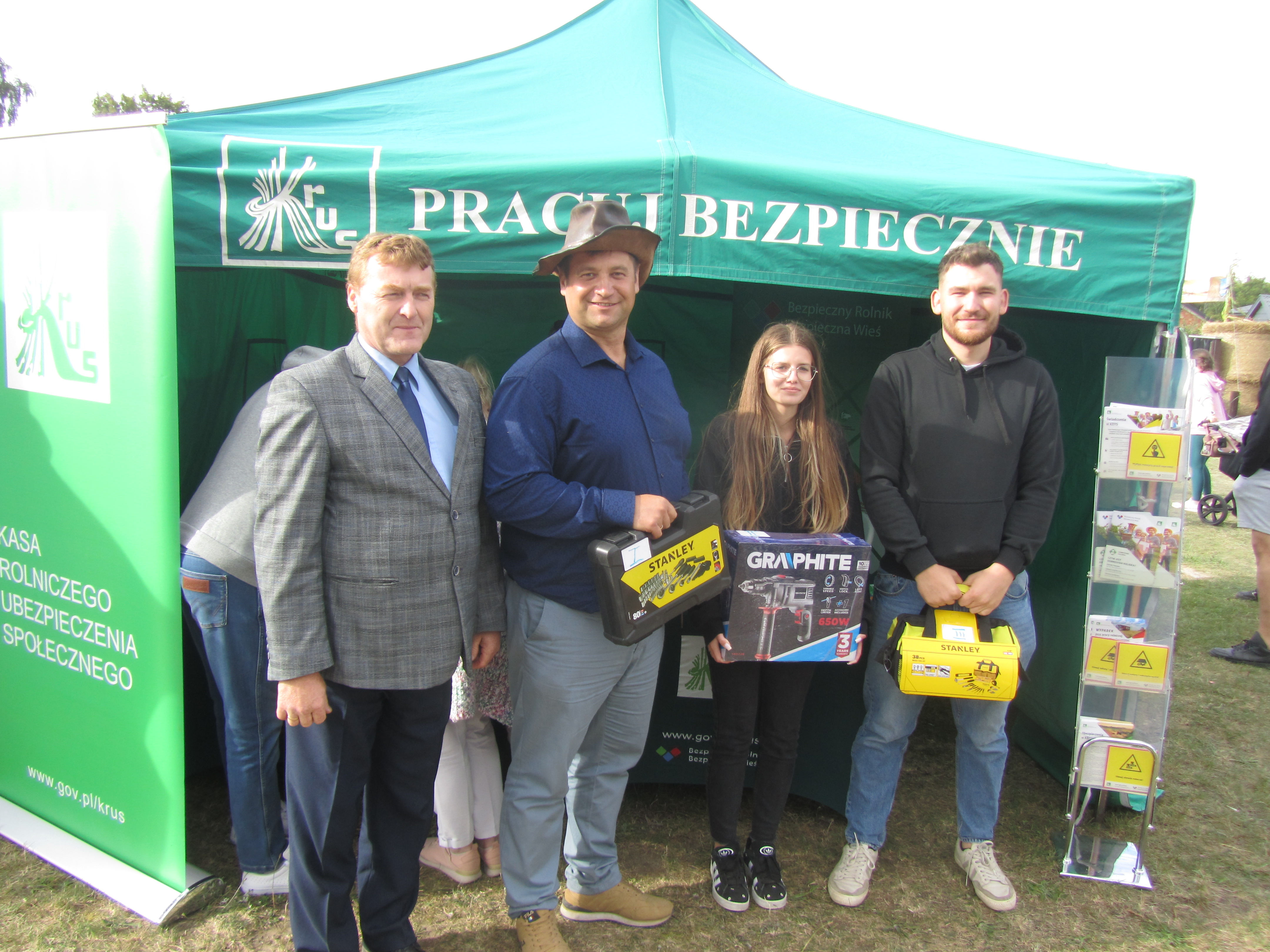 Placówka Terenowa KRUS w Ciechanowie wystawiła stoisko informacyjno-prewencyjne, na którym uczestnicy mogli uzyskać interesujące ich informacje z zakresu działalności Kasy: ubezpieczenia społecznego rolników, świadczeń emerytalno-rentowych, rehabilitacji leczniczej, a także prewencji wypadkowej. Była to doskonała okazja by dowiedzieć się więcej o bezpieczeństwie pracy w gospodarstwie rolnym. Ponadto odwiedzający mieli możliwość wzięcia udziału w konkursie wiedzy o bhp "Pracuj bezpiecznie". Dla laureatów przygotowano nagrody rzeczowe, a dla wszystkich uczestników dostępne były broszury i ulotki prewencyjne. Osoby, które rozwiązały krzyżówkę o tematyce prewencyjnej otrzymały gadżety prewencyjne poprawiające bezpieczeństwo pracy w gospodarstwie rolnym.