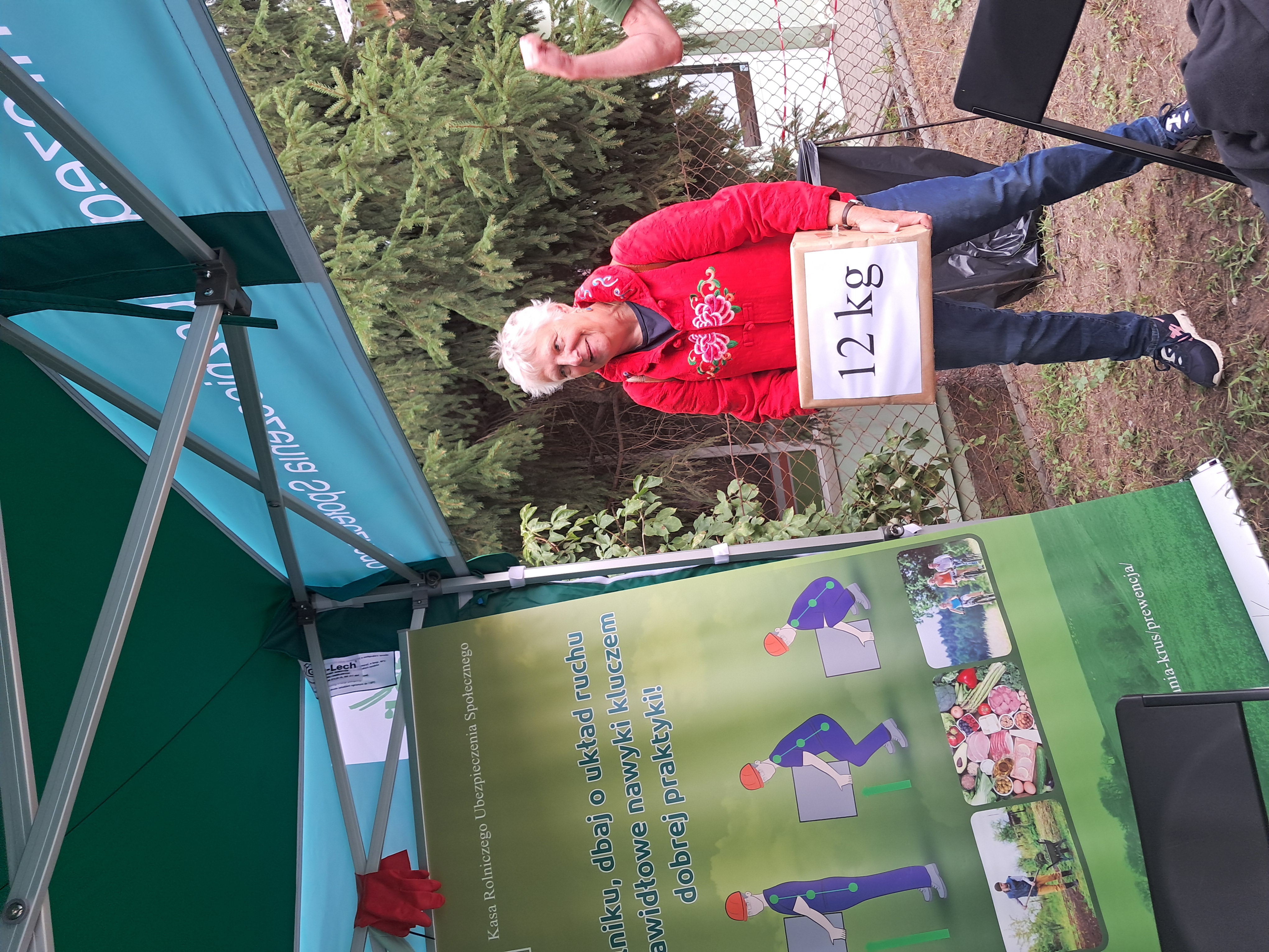 Warsztaty prawidłowego podnoszenia i przenoszenia ciężkich przedmiotów pozwoliły zainteresowanym rolnikom przećwiczyć prawidłowy sposób podnoszenia ciężkich przedmiotów, z obciążaniem nóg, a nie pleców.