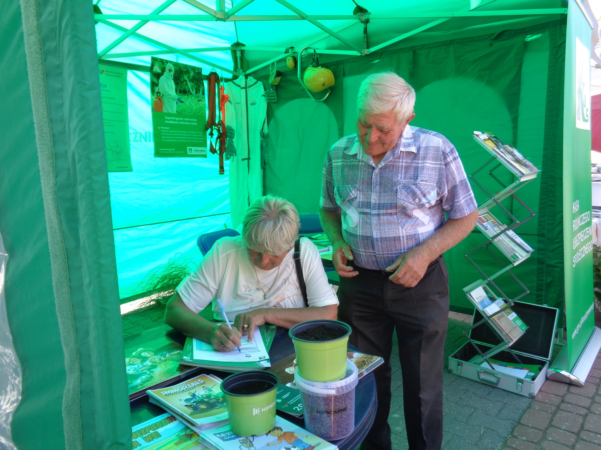 Odwiedzający stoisko KRUS otrzymali ulotki, broszury i artykułu upowszechniające wiedzę z zakresu bezpiecznej pracy w gospodarstwie rolnym wpływające na zmniejszenie ilości wypadków i chorób zawodowych.