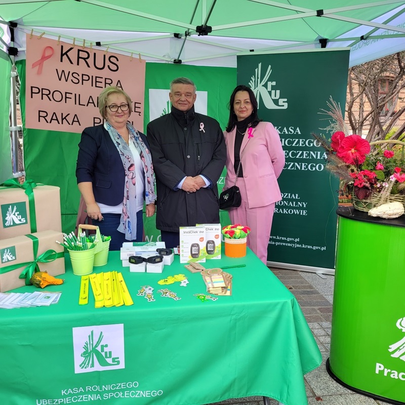 12 października 2024 roku na płycie Rynku w Myślenicach odbył się Marsz Różowej Wstążki, podczas którego Placówka Terenowa KRUS w Myślenicach zorganizowała stoisko informacyjne w ramach współpracy z Narodowym Funduszem Zdrowia.