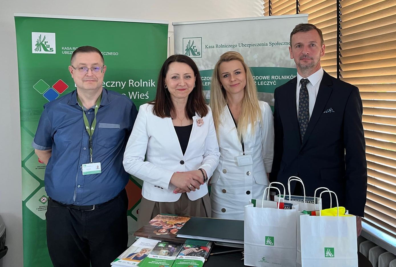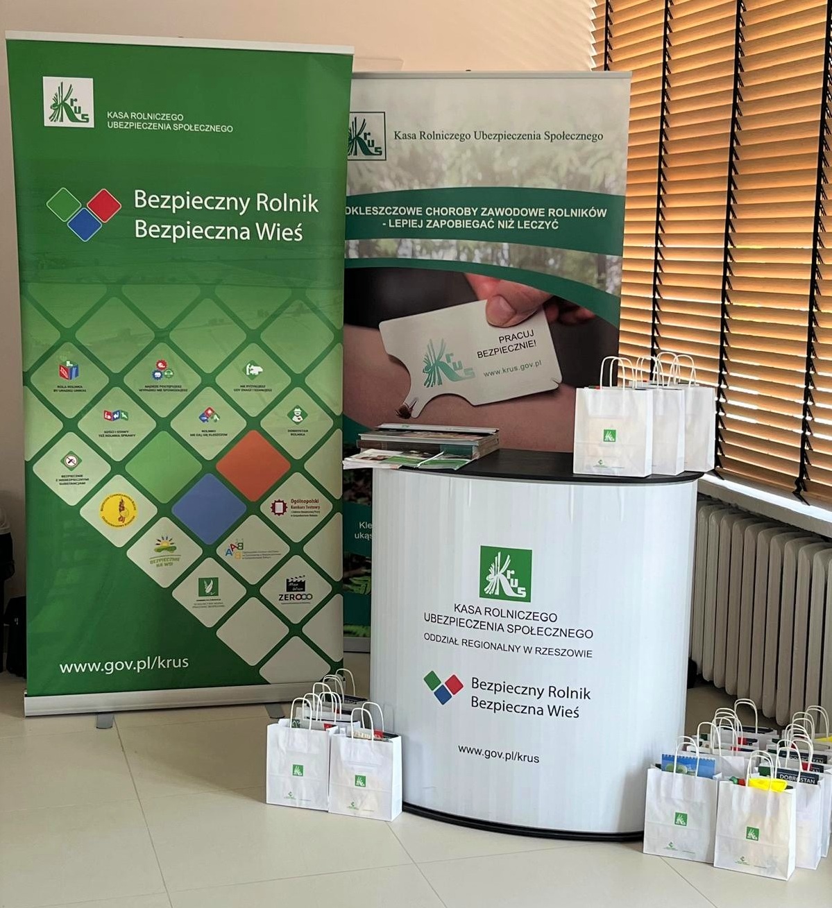 Odwiedzającym stoisko KRUS przekazywano materiały informacyjne, opaski odblaskowe, naklejki prewencyjne i ulotki promujące bezpieczną pracę w gospodarstwie rolnym, a także kalendarze rolnicze na rok 2026.