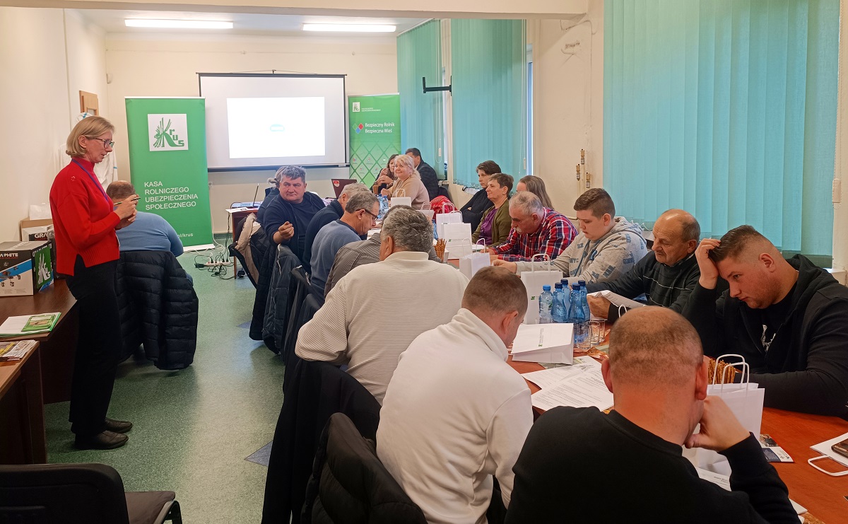 Podczas szkolenia poruszono tematy z zakresu wiedzy o BHP podczas pracy rolniczej. Przypomniano o konieczności niezwłocznego zgłaszania wypadków do KRUS i zachęcano rolników do korzystania z rehabilitacji leczniczej w Centrach Rehabilitacji Rolniczej KRUS.