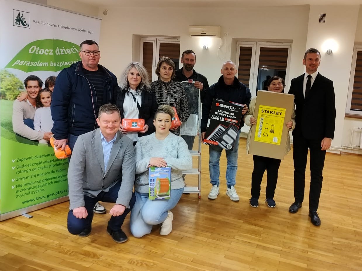 Po szkoleniu przeprowadzono konkurs testowy pod nazwą „Bezpieczna Wieś – Szczęśliwa Wieś”, w którym rolnicy mogli sprawdzić swoją wiedzę na temat bezpiecznych zachowań w miejscu swojej codziennej pracy. Laureaci konkursu otrzymali nagrody ufundowane przez KRUS, które wręczyli kierownik Placówki Terenowej w Mielcu Sławomir Majka i pracownik ds. prewencji i rehabilitacji Robert Żyła.