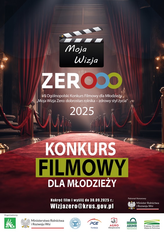 27 maja 2025 r. Kasa Rolniczego Ubezpieczenia Społecznego zainaugurowała VII Ogólnopolski Konkurs Filmowy dla Młodzieży „Moja Wizja Zero: dobrostan rolnika – zdrowy styl życia”. Konkurs odbywa się pod Honorowym Patronatem Ministra Rolnictwa i Rozwoju Wsi.