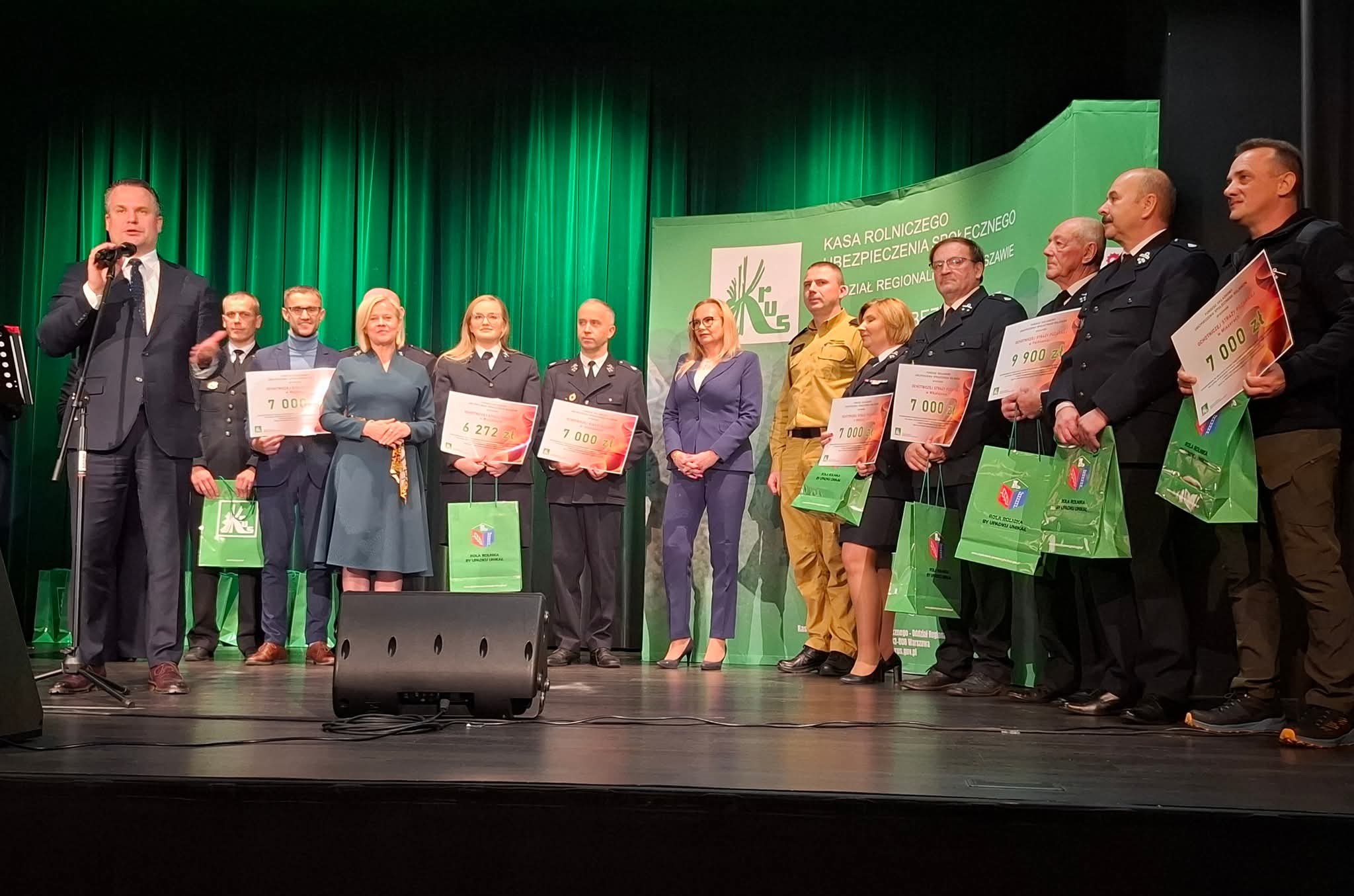 Druhowie odebrali promesy z rąk Dyrektora Oddziału Regionalnego KRUS Warszawa, p. Anny Chomy, która dziękowały druhom za dotychczasowe zaangażowanie i codzienną służbę na rzecz ludności terenów wiejskich. Gratulacje popłynęły również od Wiceminister Kultury i Dziedzictwa Narodowego p. Bożeny Żelazowskiej i obecnego podczas uroczystości Posła na Sejm p. Mirosława Adama Orlińskiego.