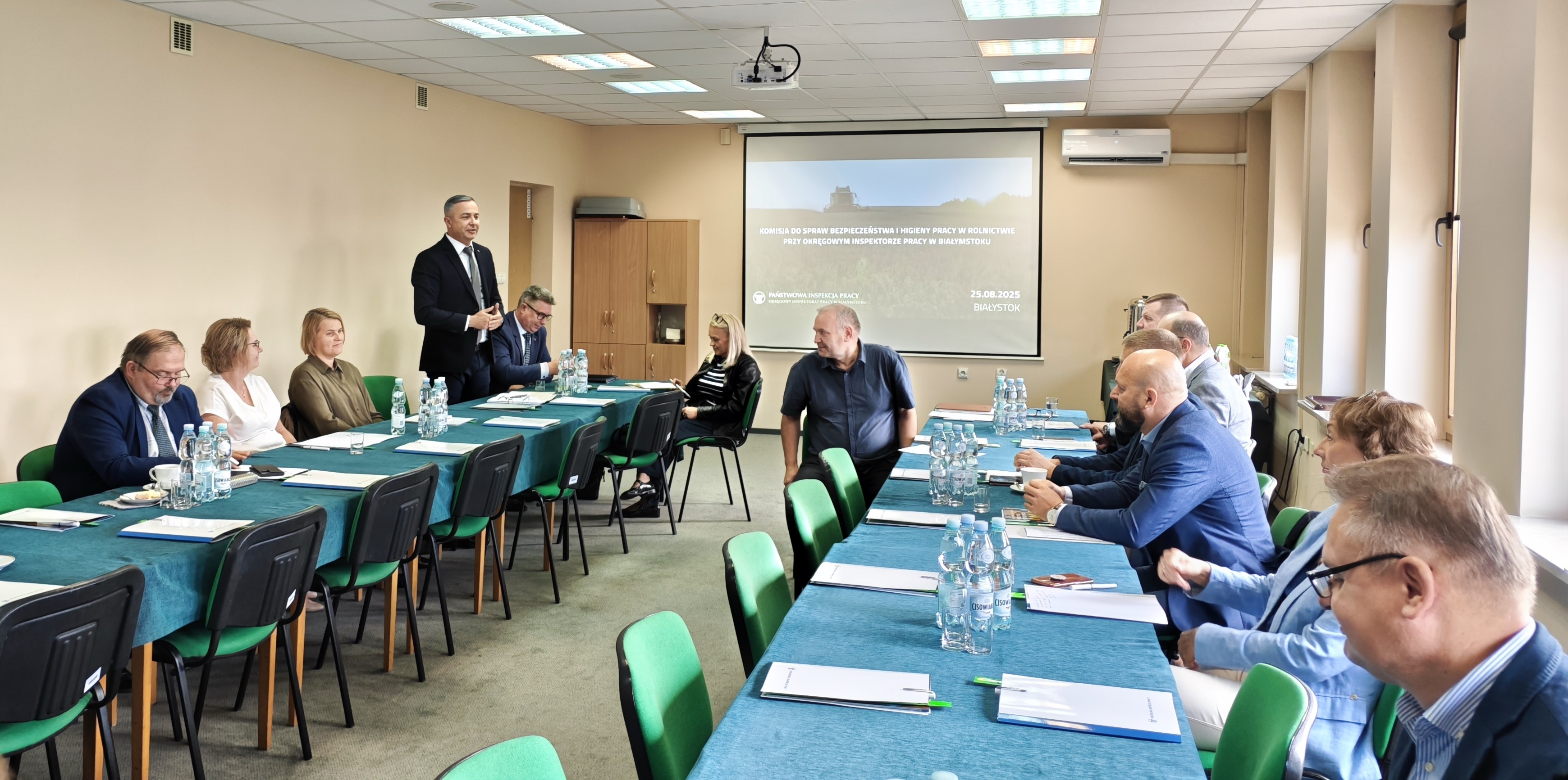 25 sierpnia 2025 r. w siedzibie Okręgowego Inspektoratu Pracy w Białymstoku odbyło się inauguracyjne posiedzenie Komisji do spraw Bezpieczeństwa i Higieny Pracy w Rolnictwie. Gremium zostało powołane w celu wskazania kierunków działań profilaktycznych w rolnictwie, w szczególności w obszarach szkolenia, doradztwa i upowszechniania zasad ochrony pracy osób zatrudnionych w sektorze rolniczym.