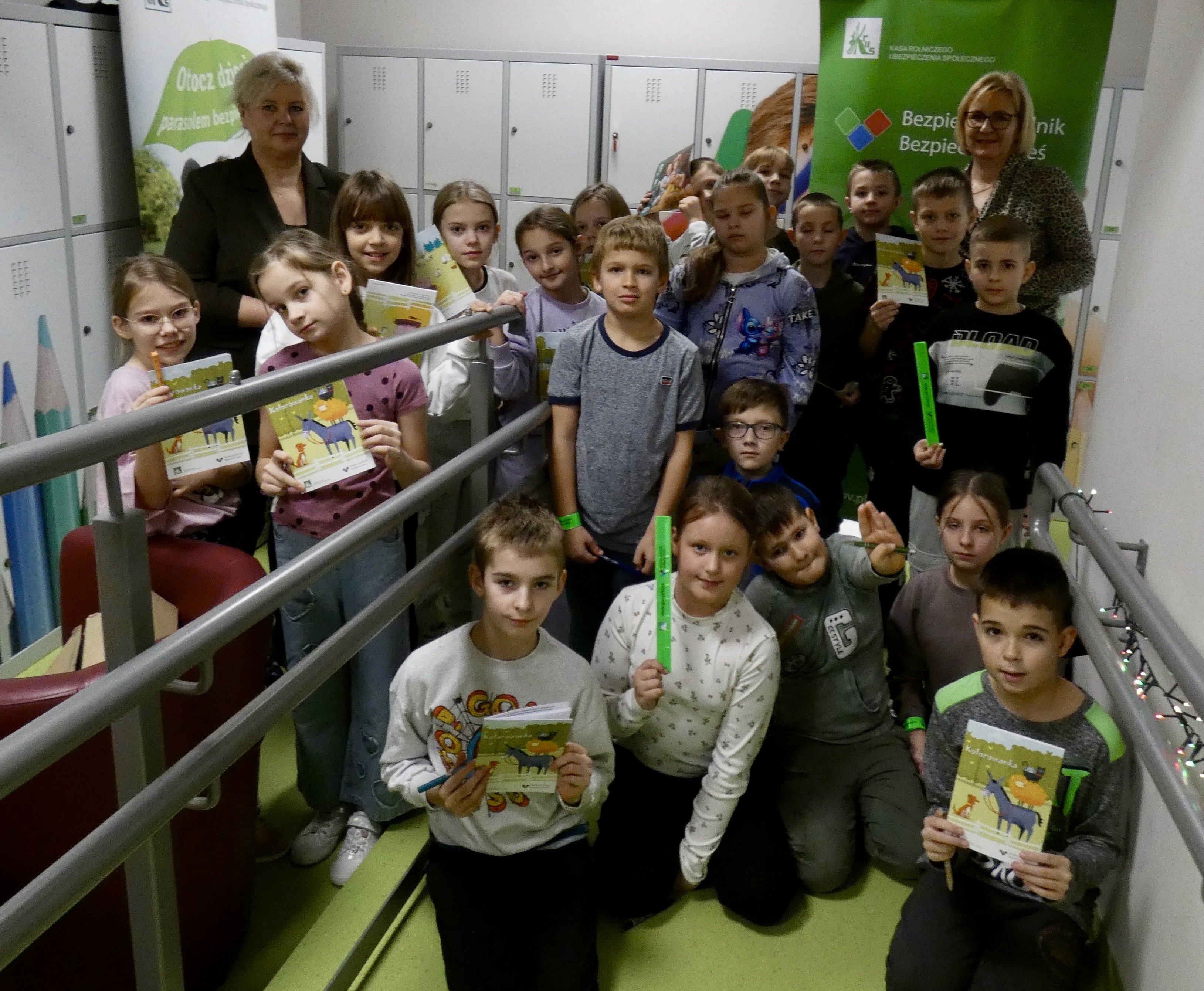 Każdy uczestnik quizu dostał drobny upominek, a dla dzieci odwiedzających stoisko informacyjno-prewencyjne przygotowano kolorowe plany lekcji, kalendarze na 2026 rok oraz materiały edukacyjne promujące zasady BHP w rolnictwie.